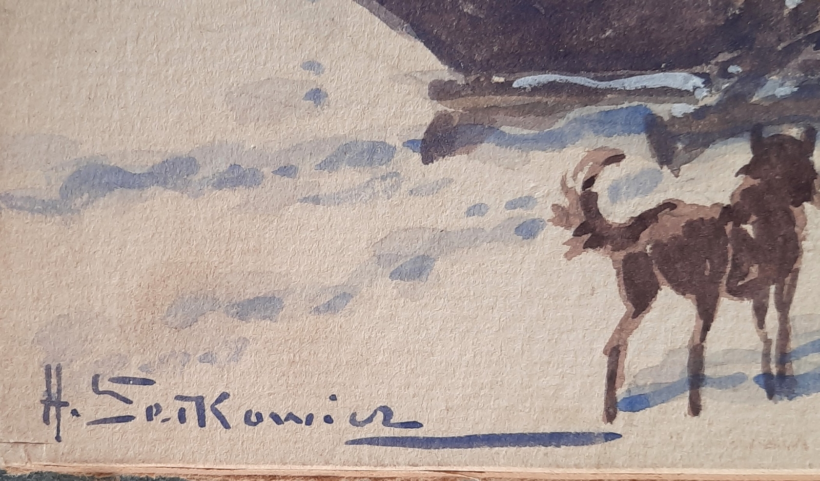 akwarela / papier naklejony na tekturę, wym. 15 cm x 30,5 cm, sygn. l.d.: A. Setkowicz; oprawa drewniana, złocona , aplikacje gipsowe, szklenie; I poł. XX w.