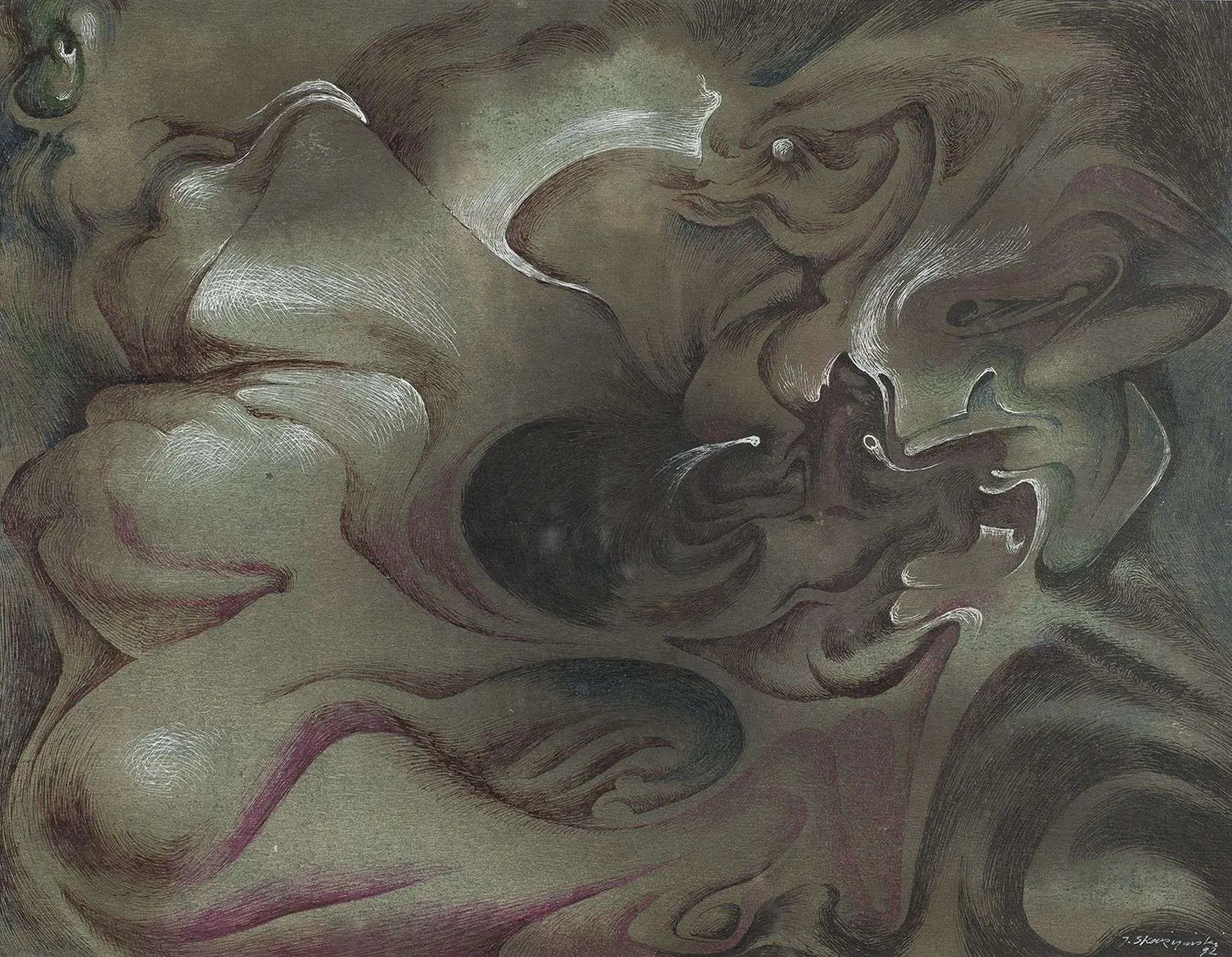 technika mieszana, tusz, papier, 37 x 48 cm (w świetle passe-partout), sygn. i dat. p.d.: J. Skarżyński 92