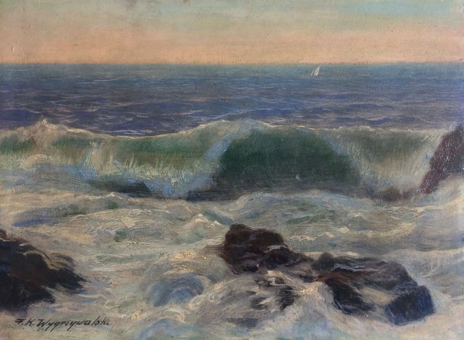 olej, tektura, wym.: 22 x 32 cm, sygn. l.d. 'F.K. Wygrzywalski'