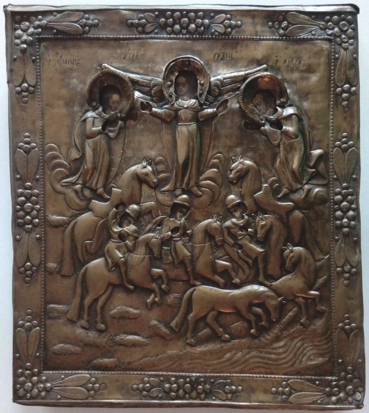 Na ikonie archanioł Michał powierza konie opiece obydwu braci.