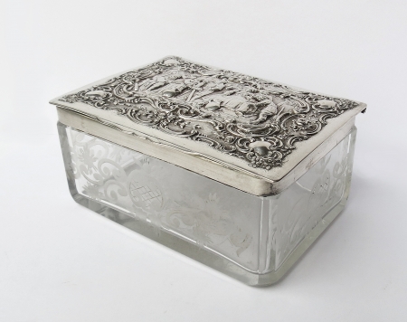 Szklana kaseta ze srebrną pokrywą, Hanau, ok. 19001 500 zł