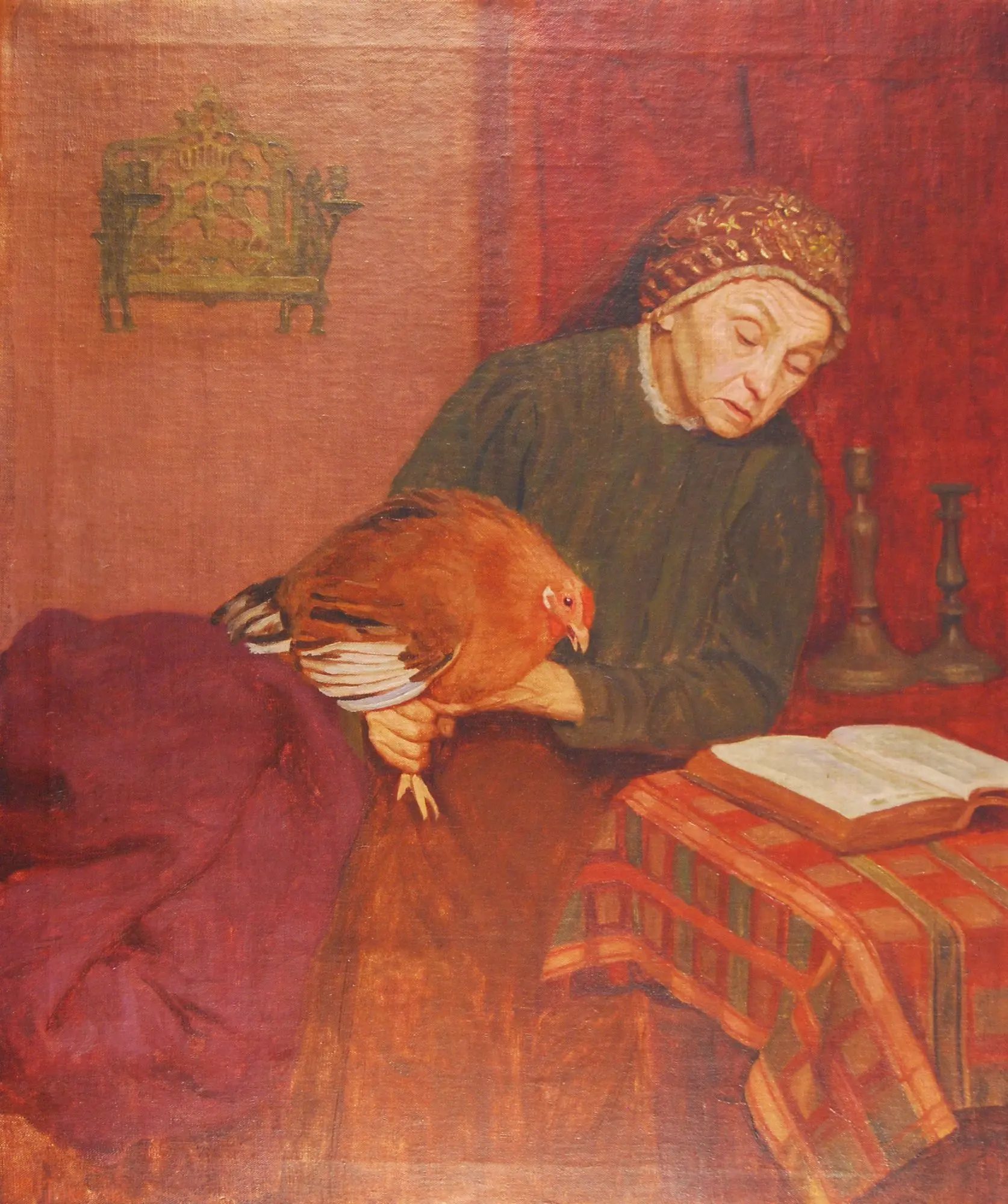 Malarz, uznany za kronikarza polsko-żydowskiego życia z czasów ostatnich lat Rosji carskiej, w swej twórczości często nawiązywał do tematyki pogromów, malował sceny związane z tradycją żydowską i obrazy o tematyce społecznej. Prezentowany obraz, tematycznie wpisujący się w nurt związany z tradycyjnymi żydowskimi obrzędami „przedstawia obrzęd kaparot związany ze świętem Jom Kipur (Dzień Pojednania). Słowo ‘kaparot’ oznacza w języku hebrajskim ‘pokutę’, ‘odkupienie’, ‘przebaczenie’. Przed świętem Jom Kipur zarzynano ptaka (kurę lub koguta), wierząc, że złożona z niego ofiara będzie stanowić odkupienie win i grzechów. (…) Obraz malowany jest w sposób charakterystyczny dla Minkowskiego. Szczegóły kompozycji oddane są dość precyzyjnie, plamy kolorystyczne są wyraźnie rozgraniczone. Charakterystyczna jest dla Minkowskiego również tonacja kolorystyczna obrazu, dość ciemna, z obecną dużą plamą ulubionego przez artystę fioletu.”