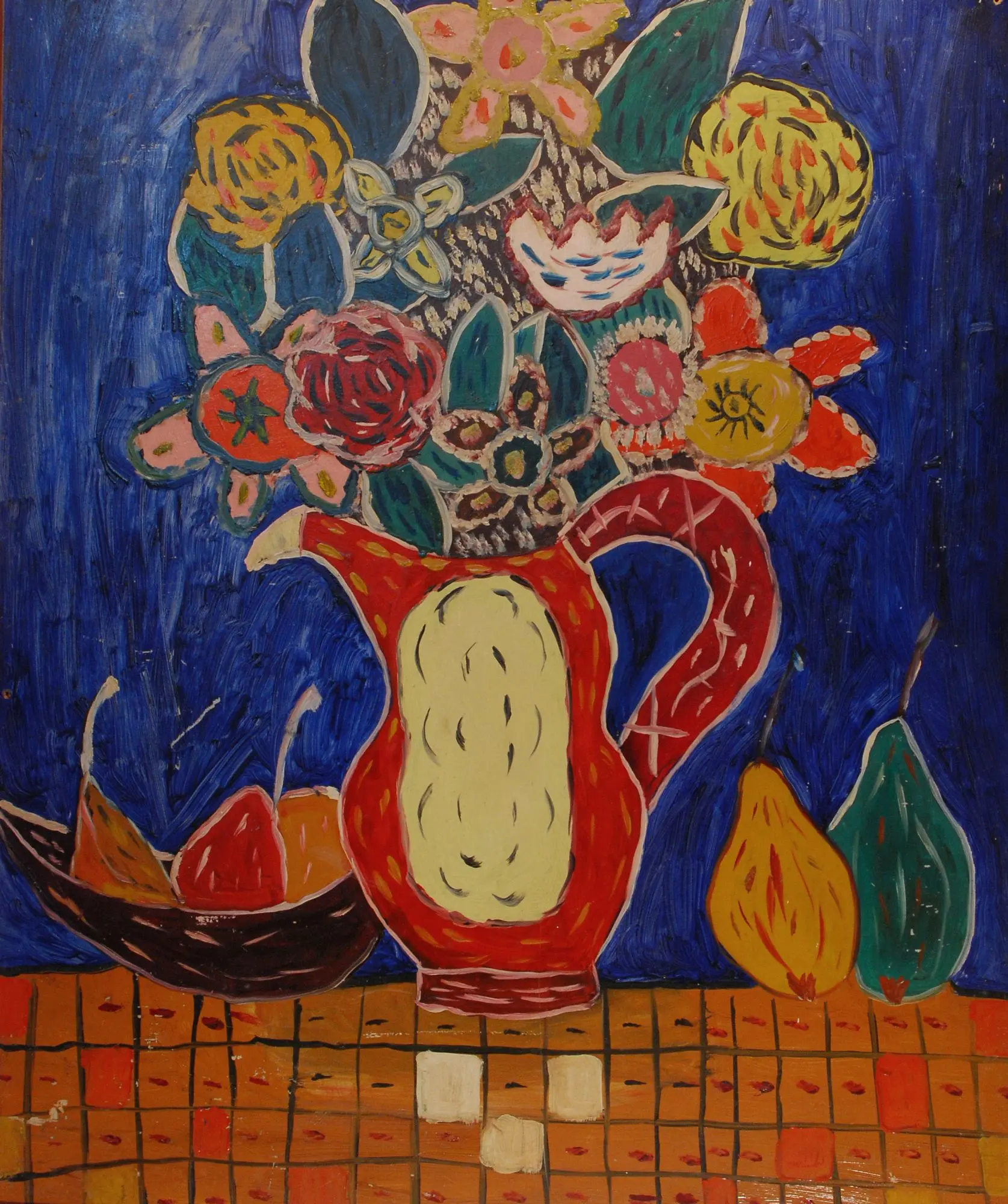 olej, płyta pilśniowa, 57 x 47 cm; Na odwrocie napis flamastrem: ur. 1958 / zm. 1992 / Krawczuk Eugeniusz / 66 / Martwa natura / 60 x 47 / 1971, oraz pieczęć Śląskiego Wojewódzkiego Konserwatora Zabytków.