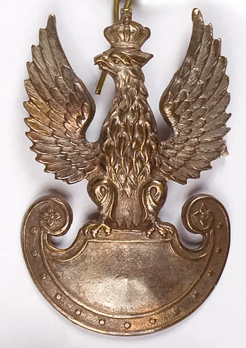 34 x 54 mm, tombak srebrzony. Rewers z kontrą, usunięte oryginalne druciki, dolutowana pozioma zapinka. Stan dobry.