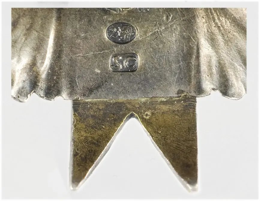 35 x 35 mm, srebro, złoto, emalia. Odznaka trzyczęściowa. Rewers gładki, sygnatura "S.C." i próba srebra. Usunięty słupek, dorobiona agrafka w złocie. Stan dobry.