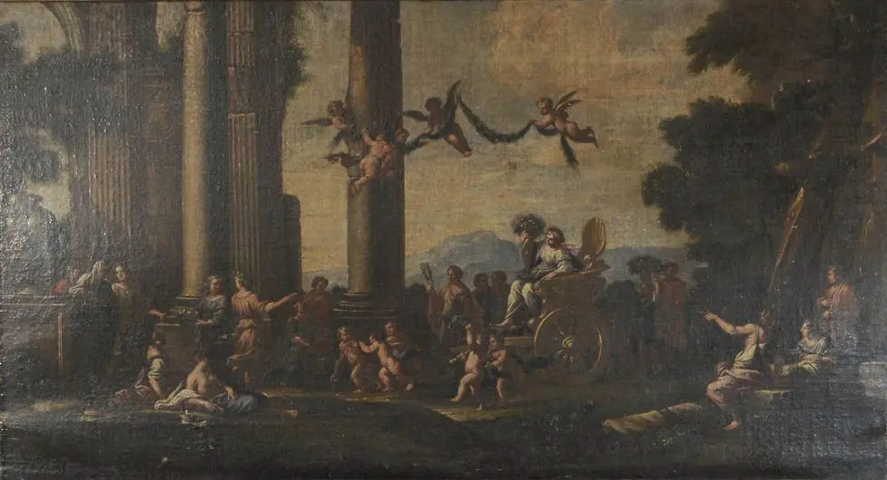 Prezentowany obraz nawiązuje do nurtu klasycyzującego w malarstwie barokowym. Motyw triumfalnego wjazdu, inspirowany antyczną ceremonią uroczystego wjazdu zwycięskiego wodza do Rzymu, pojawił się w czasach nowożytnych jako impreza uświetniająca karnawał. Na rydwanie zamiast antycznych przywódców zasiadły przystrojone w kwiaty postacie przebrane za mitologiczne bóstwa. W malarstwie motyw ten podjął m.in. Annibale Carracci (1560-1609) w słynnym fresku "Triumf Bachusa i Ariadny" w Galerii Farnese w Palazzo Farnese. Triumfalne procesje mitologicznych postaci malował Nicolas Poussin (1594-1665) – "Triumf Neptuna", "Triumf Pana", oraz powstały w pierwszym okresie rzymskim artysty "Triumf Flory". Tematy zarówno "Triumfu Flory" Poussina, jak i fresku z Galerii Farnese Carracciego, były inspirowane "Metamorfozami" Owidiusza – poematem epickim i swoistą antologią wątków mitologicznych, do których odwoływało się m.in. klasycyzujące malarstwo baroku.