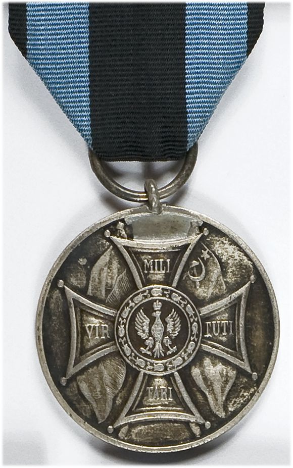 srebrny, wersja ze sztandarami oraz napisem LENINO, średnica 40 mm. Wykonany w srebrze, zawieszony na oryginalnej wstążce. Do odznaczenia dołączone dwa zaświadczenia - z 1945 r., oraz tymczasowe - z 1946 r. Stan zachowania całości bardzo dobry.