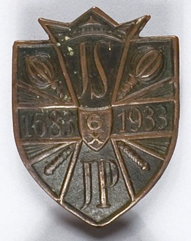 Aukcja 141 / Poz. 71 - Odznaka pamiątkowa z Rewii Kawalerii zorganizowanej na Krakowskich Błoniach na 250-lecie Odsieczy Wiedeńskiej