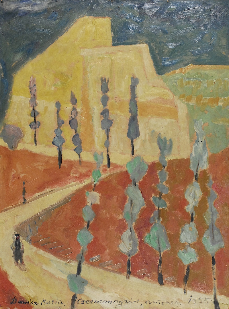 olej, tektura, 60,5 x 45,5 cm sygn. i opis u dołu: Dawska Maria, Czerwonogród, Bułgaria, 1955 r. Obraz ofiarowany przez artystkę rodzinie obecnych właścicieli.