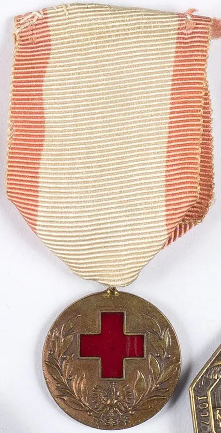 Odznaka Honorowa PCK - stopień IV, medal brązowy, średnica 20 mm, na rewersie napis: PCK Zasłudze, wstążka. Stan dobry.