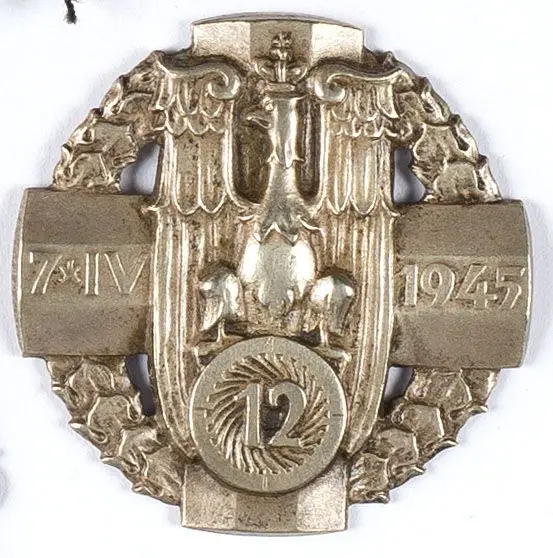 12 Pułk Artylerii Ciężkiej - biały metal, 41,5 x 41,5 mm, nakrętka sygn. Larioli.