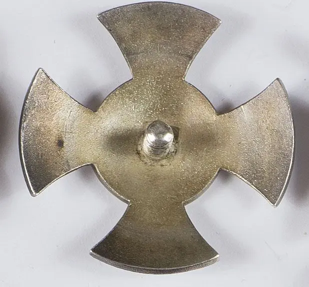 Odznaka 8 Pułku Piechoty Legionów, oficerska, 40,5 x 40,5 mm, tombak srebrzony, emalia, rewers gładki, słupek, nakrętka sygn. W. Gontarczyk Warszawa ul. Miodowa No 19. Na awersie, na dolnym ramieniu krzyża naprawiana emalia. Stan dobry.