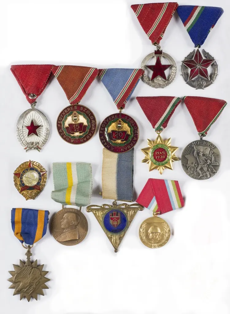Zestaw 11 odznaczeń różnych, w tym: Nagroda Prezydenta Miasta Krakowa 1931 r. wstążka oryginalna, Medal Piusa XII, wstążka oryginalna, USA medal lotniczy wstążka oryginalna oraz 6 odznaczeń węgierskich i 2 czechosłowackie.