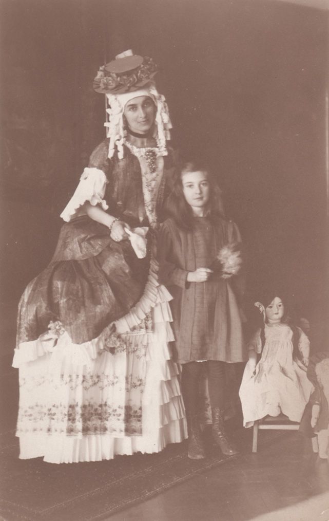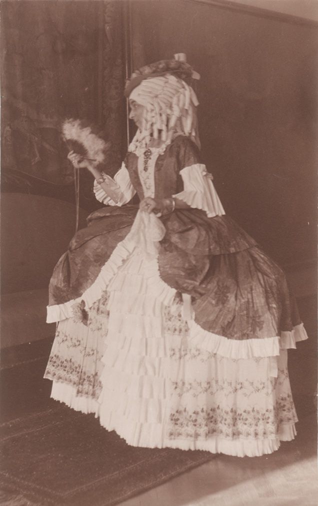 Fotografia Stefanii Szyszko-Bohuszowej w sukni w stylu rokoko, w peruce zaprojektowanej i wykonanej z papieru przez Andrzeja Pronaszkę znajduje
