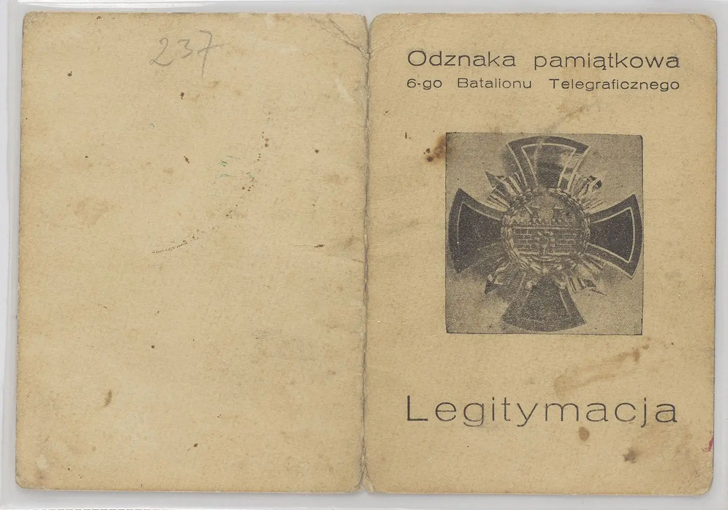 Auction 186 / Lot no. 371 - Legitymacja do odznaki pamiątkowej 6 Batalion Telegraficzny - Jarosław Nr 214
