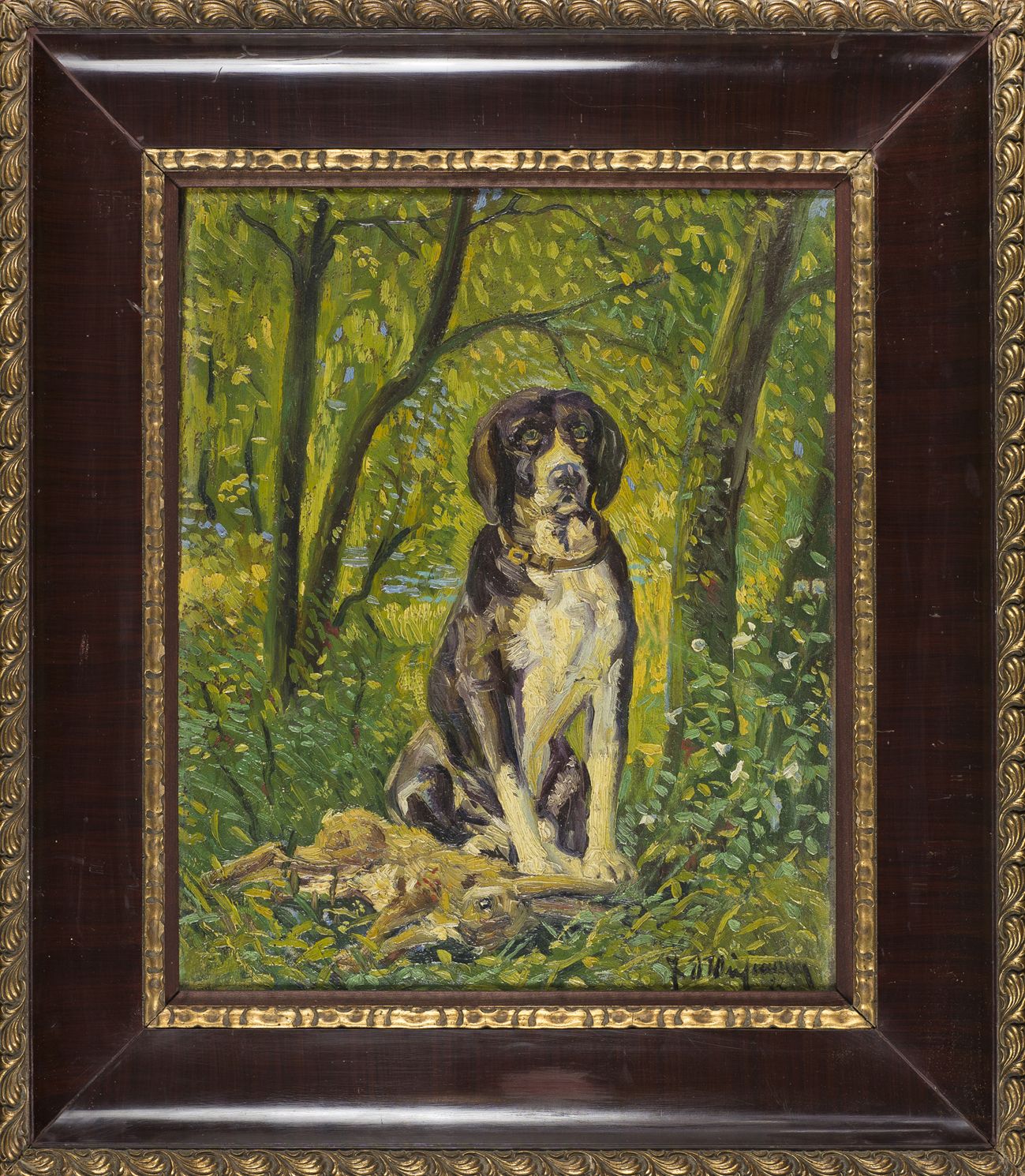 Aukcja 191 / Poz. 12 - Wyżeł z trofeum myśliwskim, 1922 r.