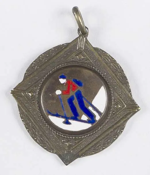 Odznaka nagrodowa, 37x35 mm. Tombak, emalia. Na rewersie napis: III MISTARZ. OKR. K. P. W. LWÓW ŁAWOCZNE 6 II 1938, brak wstążki, stan dobry.