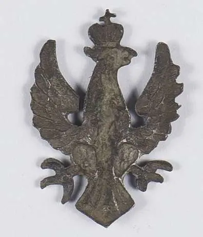 Orzeł w typie orłów Wojska Polskiego na Wschodzie, 32x22,5 mm. Cynk. Rewers z lekką kontrą. Orły tego typu produkowano w Warszawie po jej zdobyciu w 1915 r. Stan bardzo dobry.
