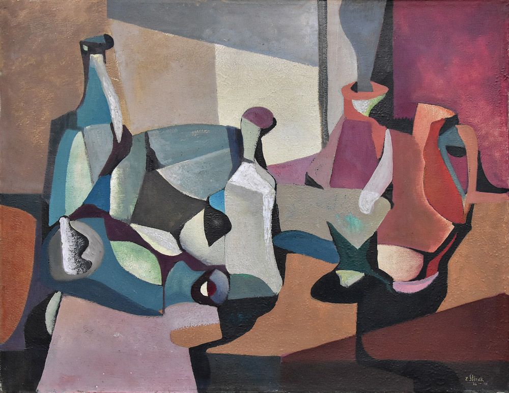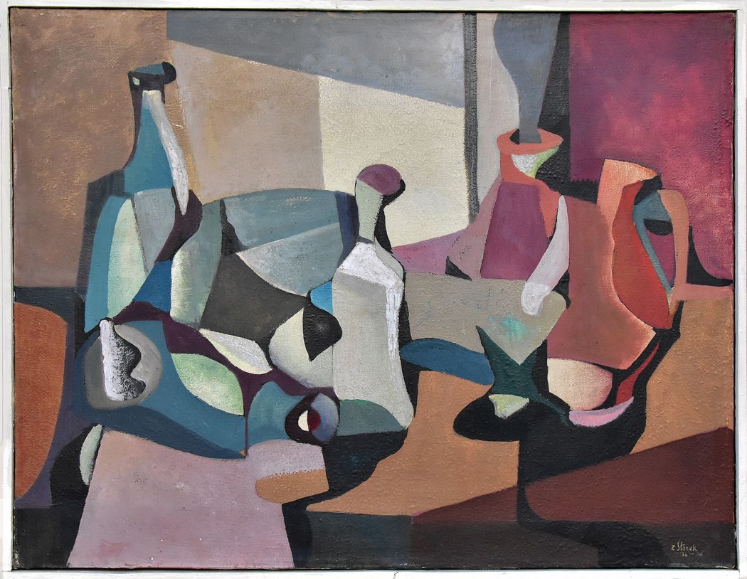 Obraz został ofiarowany rodzinie obecnych właścicieli przez Zdzisława Stanka. Podobny kompozycyjnie do prezentowanej pracy obraz "Butelki i światło", 1956, olej, płótno, ze zbiorów Muzeum Górnośląskiego w Bytomiu, jest reprodukowany w: "Katowicki Underground artystyczny po 1953", Galeria Sztuki Współczesnej BWA w Katowicach, Katowice 2004, s. 462, il. 1.
