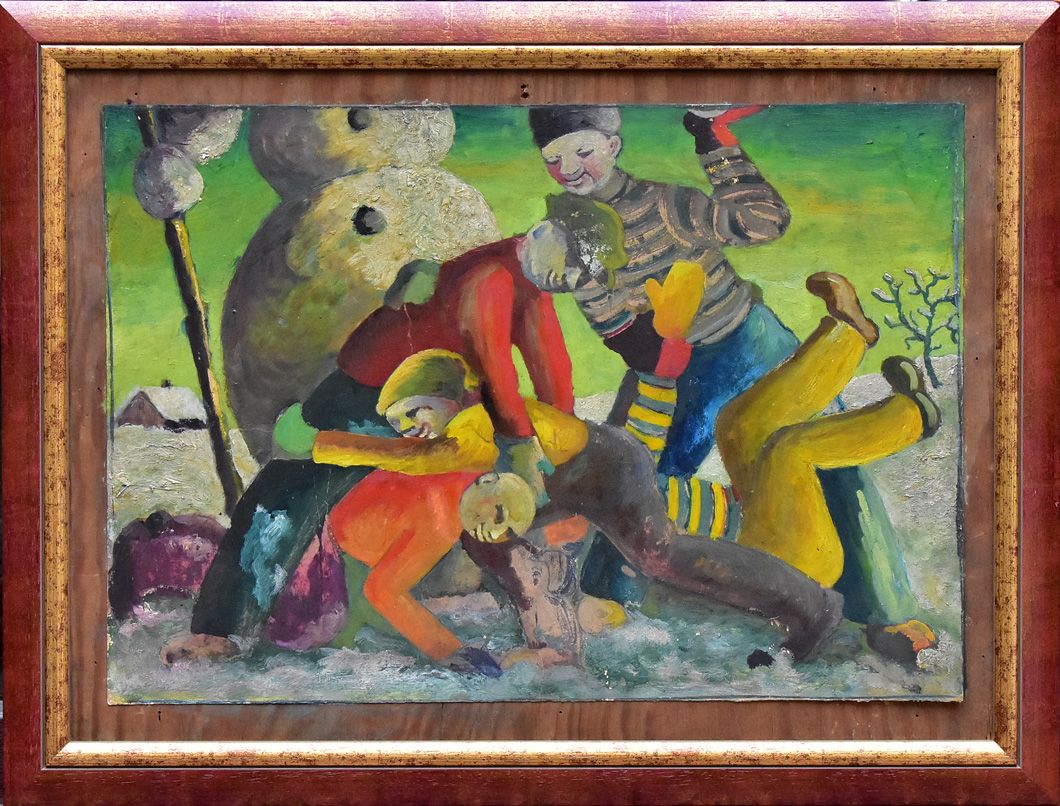 Obraz z prywatnych zbiorów doc. Józefa Ligęzy (1910-1972), wybitnego etnografa, folklorysty, zbieracza śląskich pieśni ludowych, w latach 1963-1972 dyrektora Muzeum Górnośląskiego w Bytomiu.