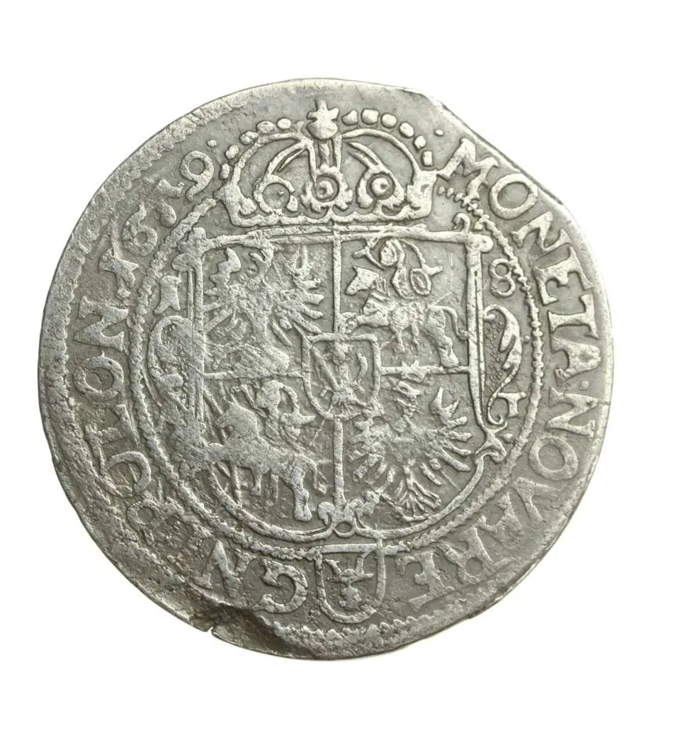 JAN KAZIMIERZ (1648-1668) ort poznański 1659 A-T, ładny; AR 30, ort koronny Jana Kazimierza (1648-1668) z mennicy poznańskiej; 1659 1-8, A - T, z obustronnymi obwódkami, niedoszacowany; stan III+, patyna; Kopicki 1764