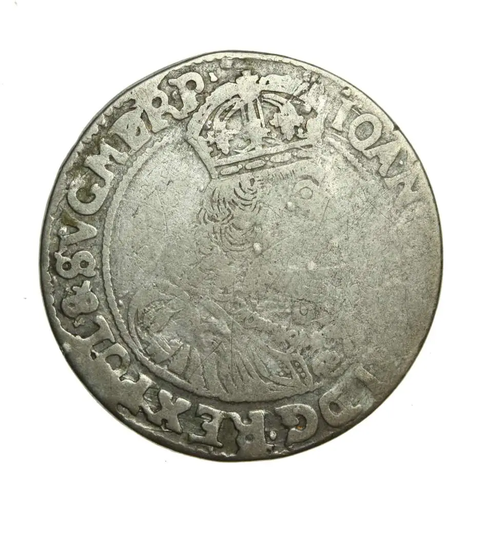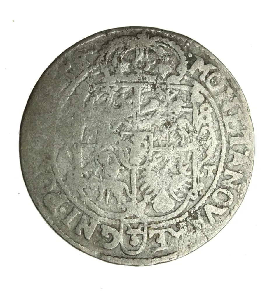JAN KAZIMIERZ (1648-1668) ort poznański 1658 A-T, ładny; AR 30, ort koronny Jana Kazimierza (1648-1668) z mennicy poznańskiej; 1659 1-8, A - T, z obustronnymi obwódkami; stan III / IV, (wytarcia pod starą patyną), rewers lepszy; Kopicki 1758 R