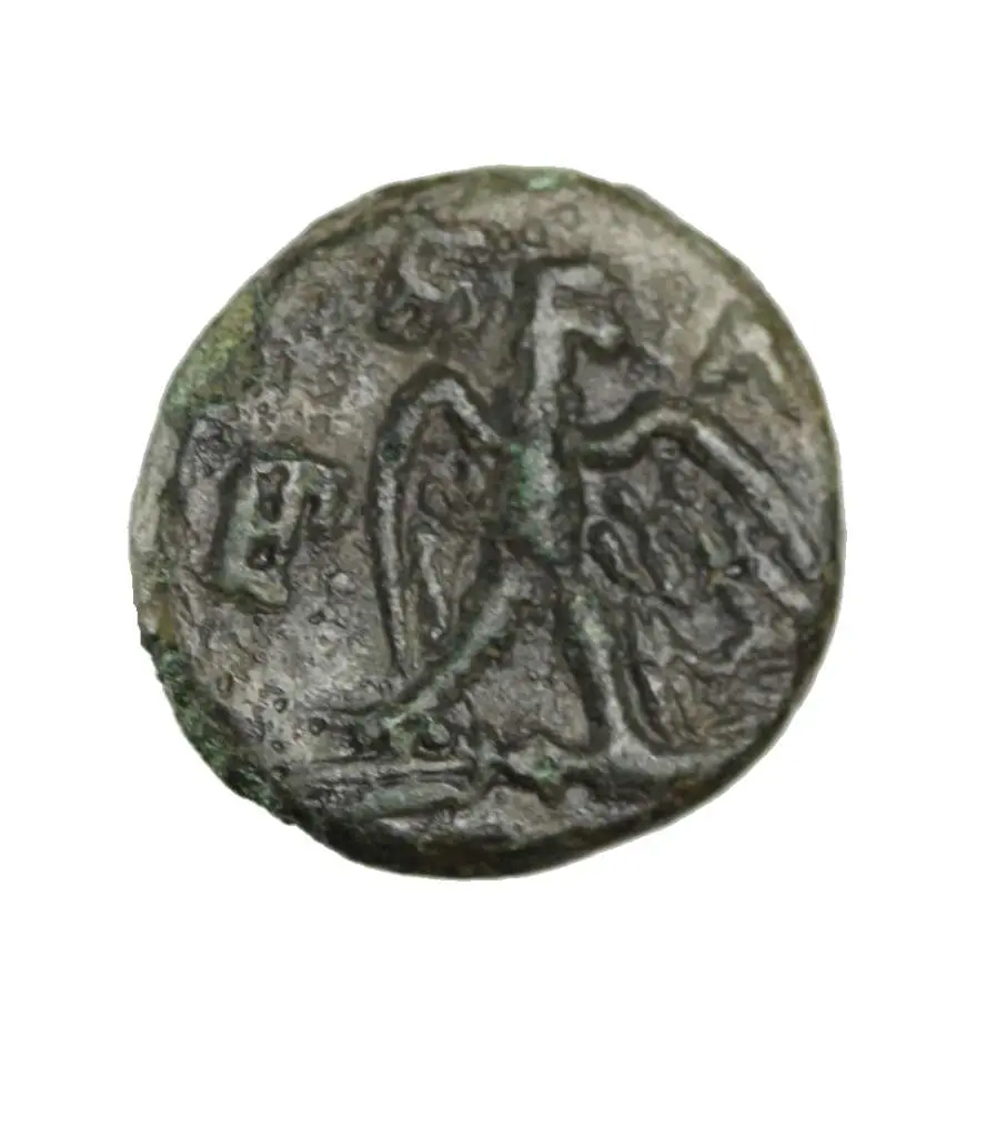 AE19, brąz ostatniego króla Macedonii (179-168 pne)-głowa herosa Perseusza; w prawo/orzeł na piorunach, napis gr.PER, ; krystaliczna patyna, stan III+, ; SEAR 6807