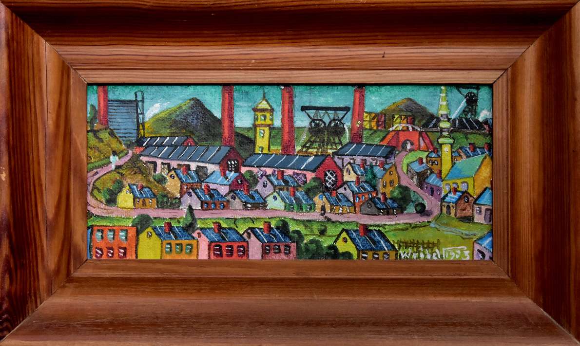 Aukcja 217 / Poz. 3 - "Pejzaż z miasteczkiem i kopalnią", 1983