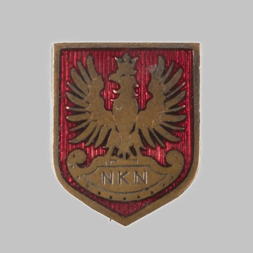 Odznaka Naczelny Komitet Narodowy. 19x15 mm. Wykonana w mosiądzu. Emalia: czerwona. Rewers gładki. Sygnowana: "F.SCH?FFLER - WIEN - NEUBAUG 60". Zapięcie na agrafkę. Stan dobry.