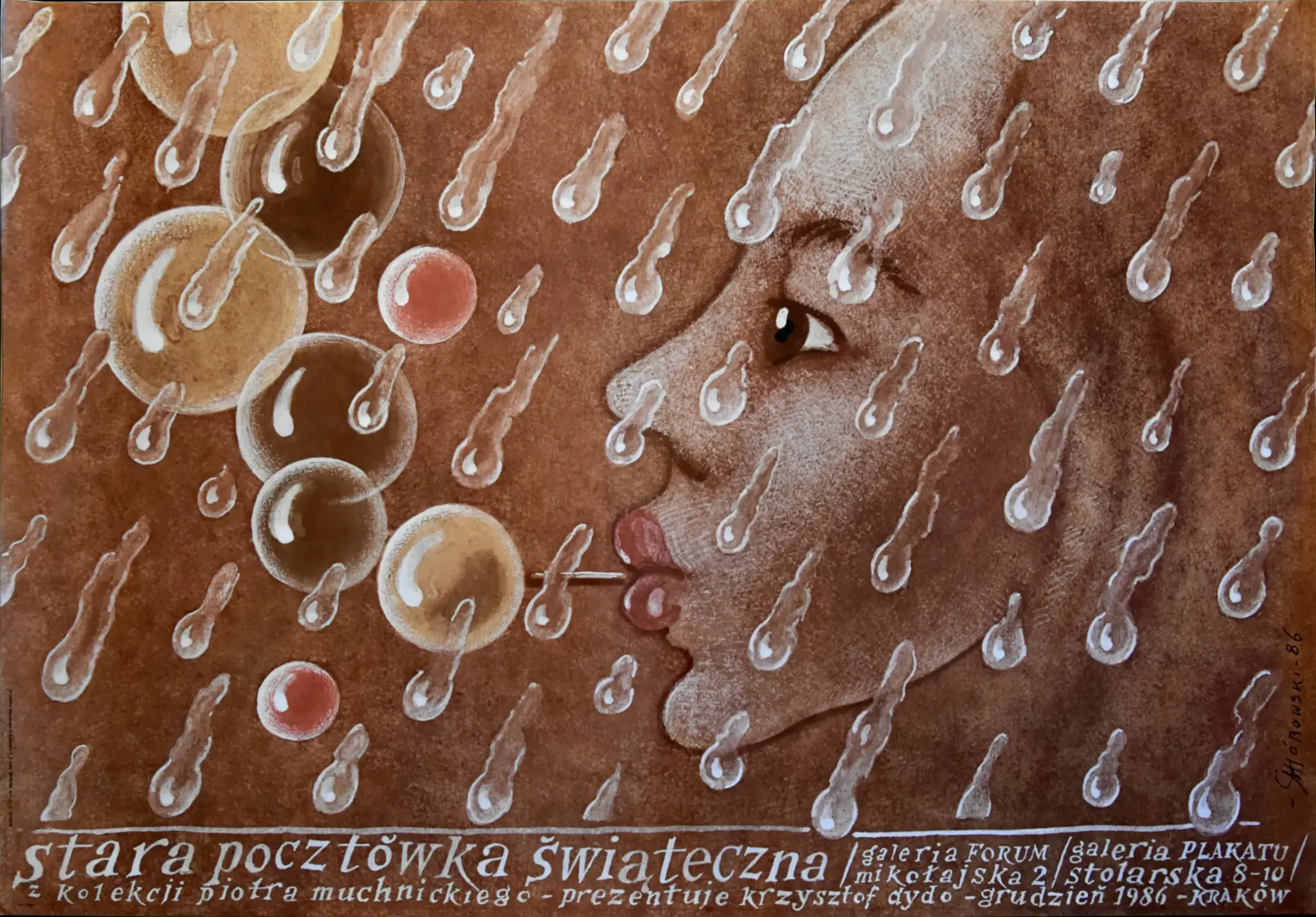 Stara pocztówka świąteczna. Z kolekcji Piotra Muchnickiego - prezentuje Krzysztof Dydo, grudzień 1986, plakat, sygn.: p.d. M. Górowski 86, 98 x 68 cm. Stan - dobry.