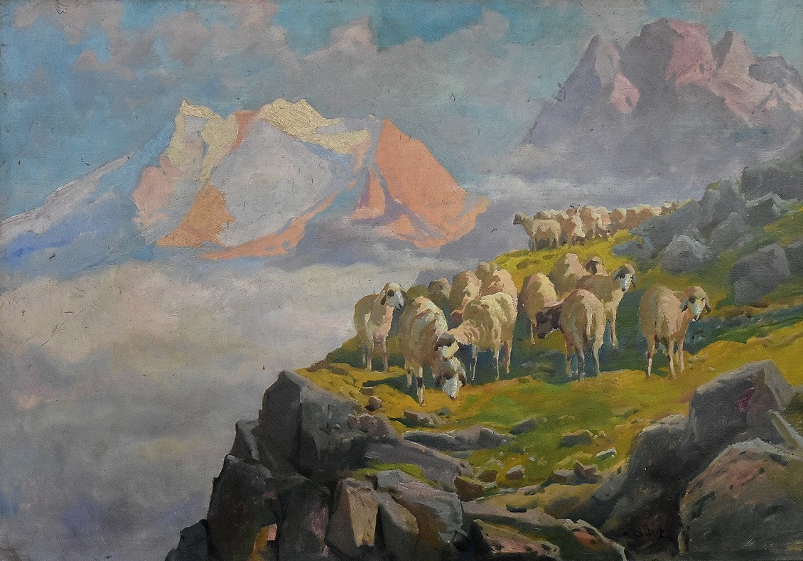 Aukcja 222 / Poz. 10 - "Pejzaż tatrzański ze stadem owiec"