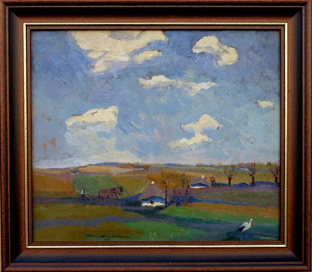 Aukcja 222 / Poz. 14 - "Pejzaż wiosenny z bocianem", 1922