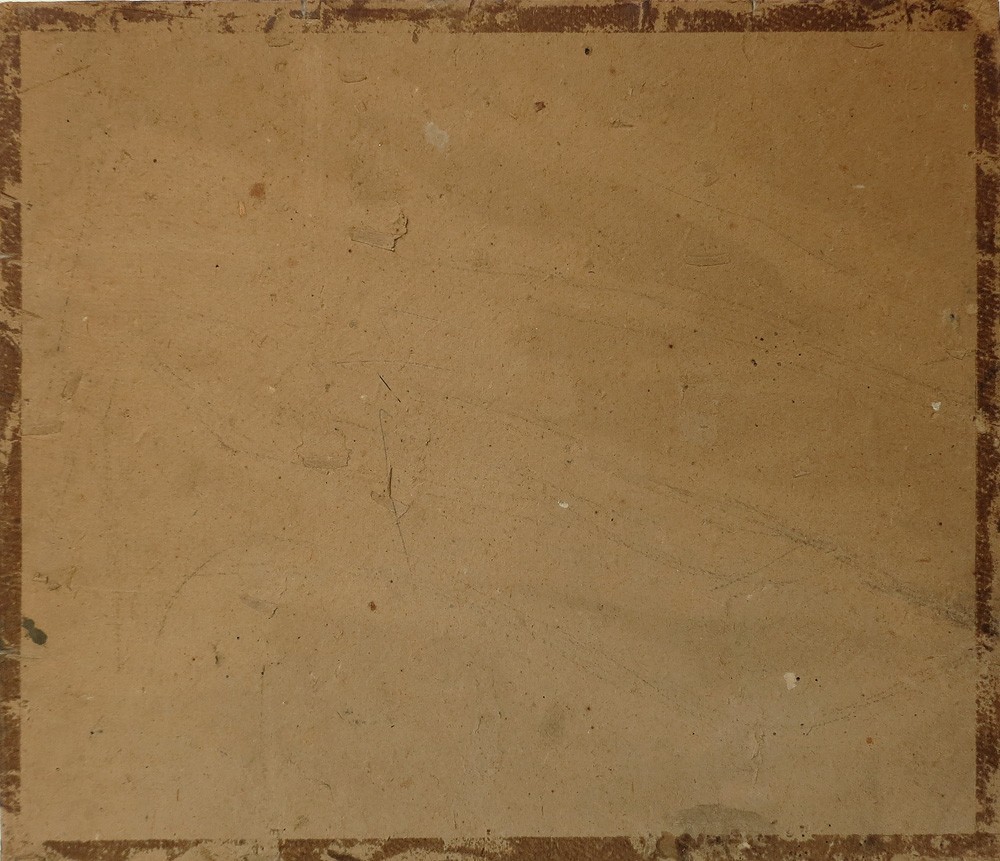 Stan zachowania: w dwóch górnych narożnikach tektura lekko rozwarstwiona.