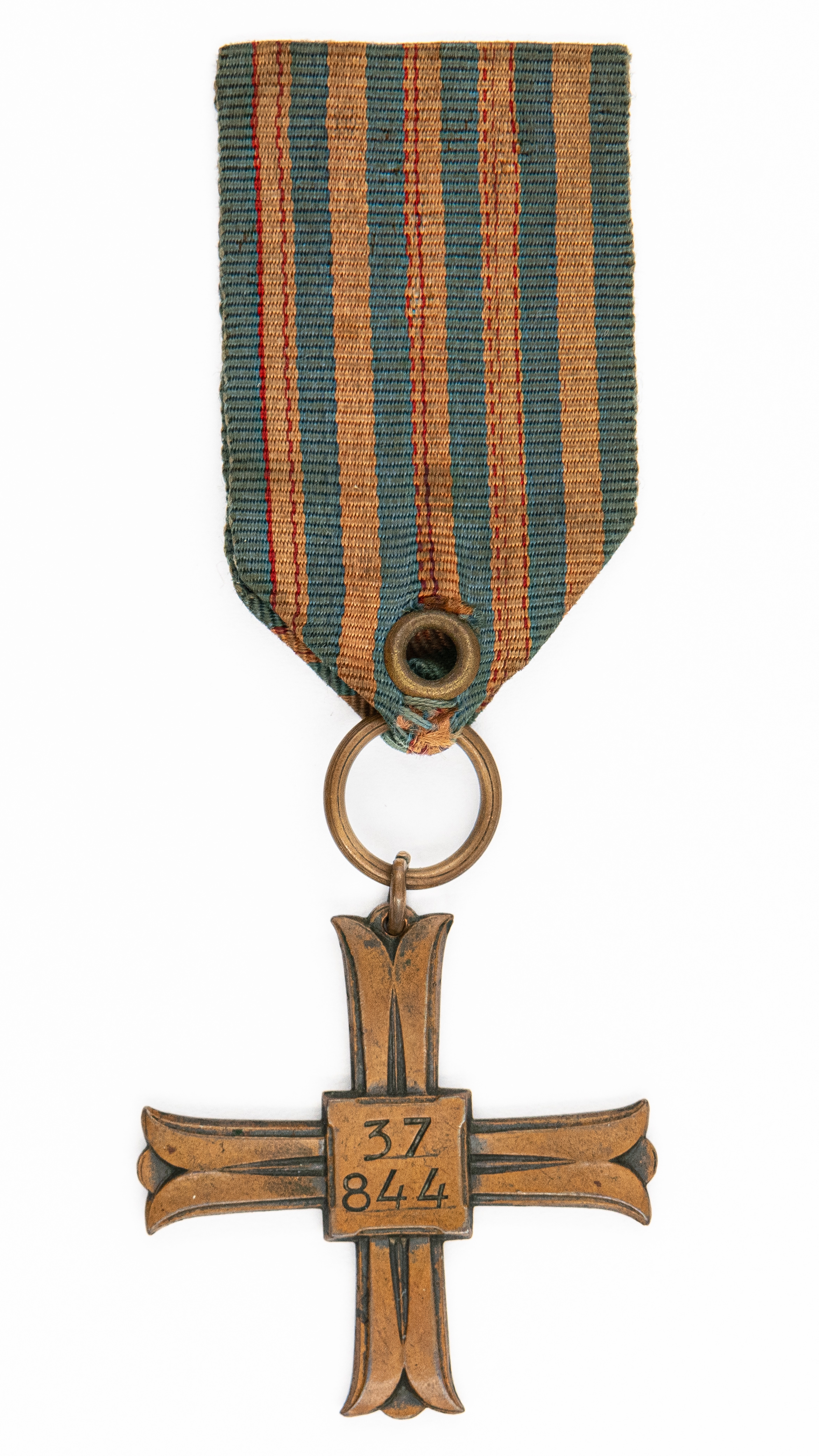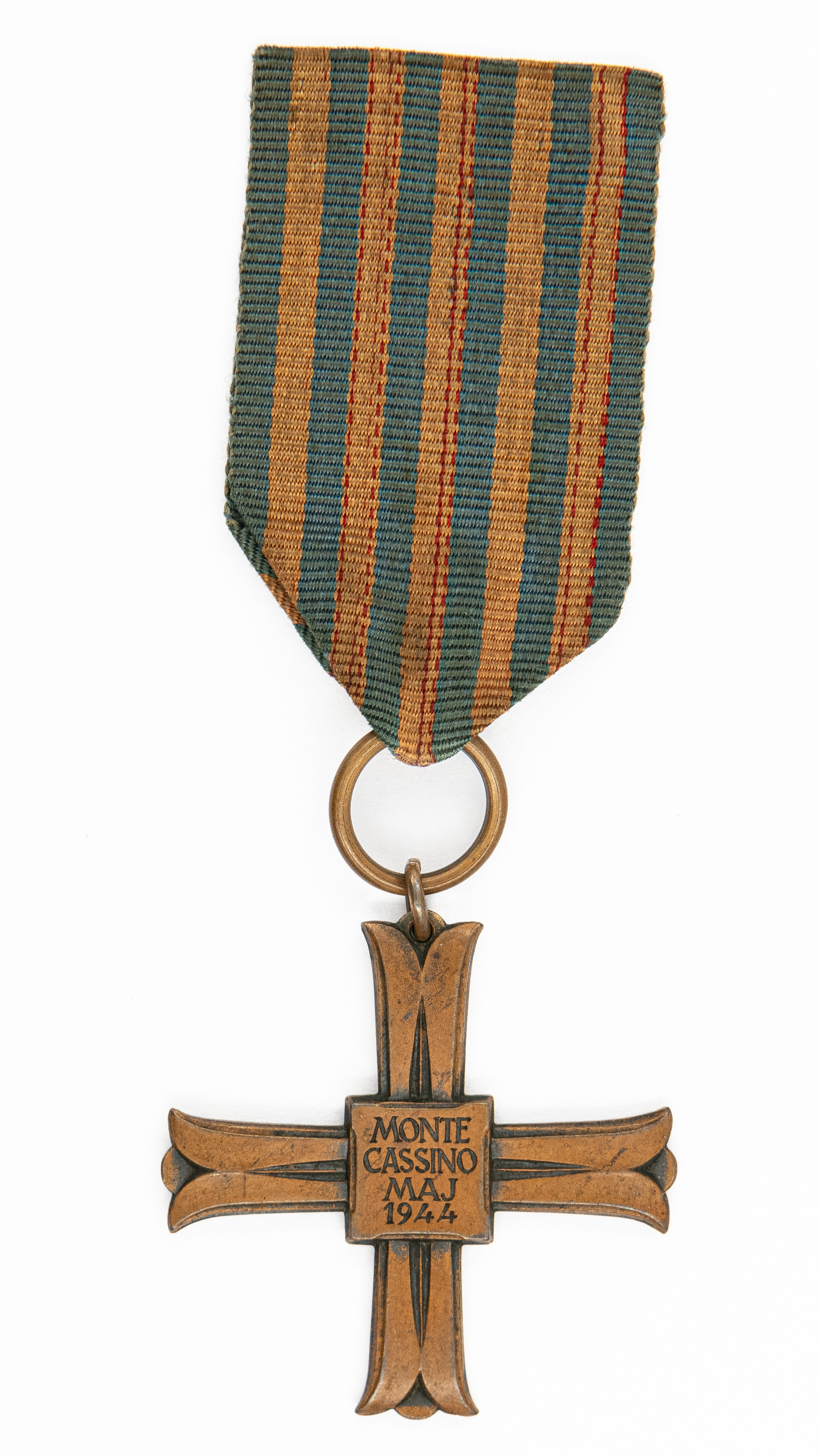 Krzyż Monte Cassino, 41 x 41 mm. Wstążka oryginalna. Rewers z numerem: "37844", (BOMBARDIER NOWAK FELIKS 1900/14 III 1 PUŁK POMIAROWY ARTYLERII 2 KORPUS). Stan dobry.