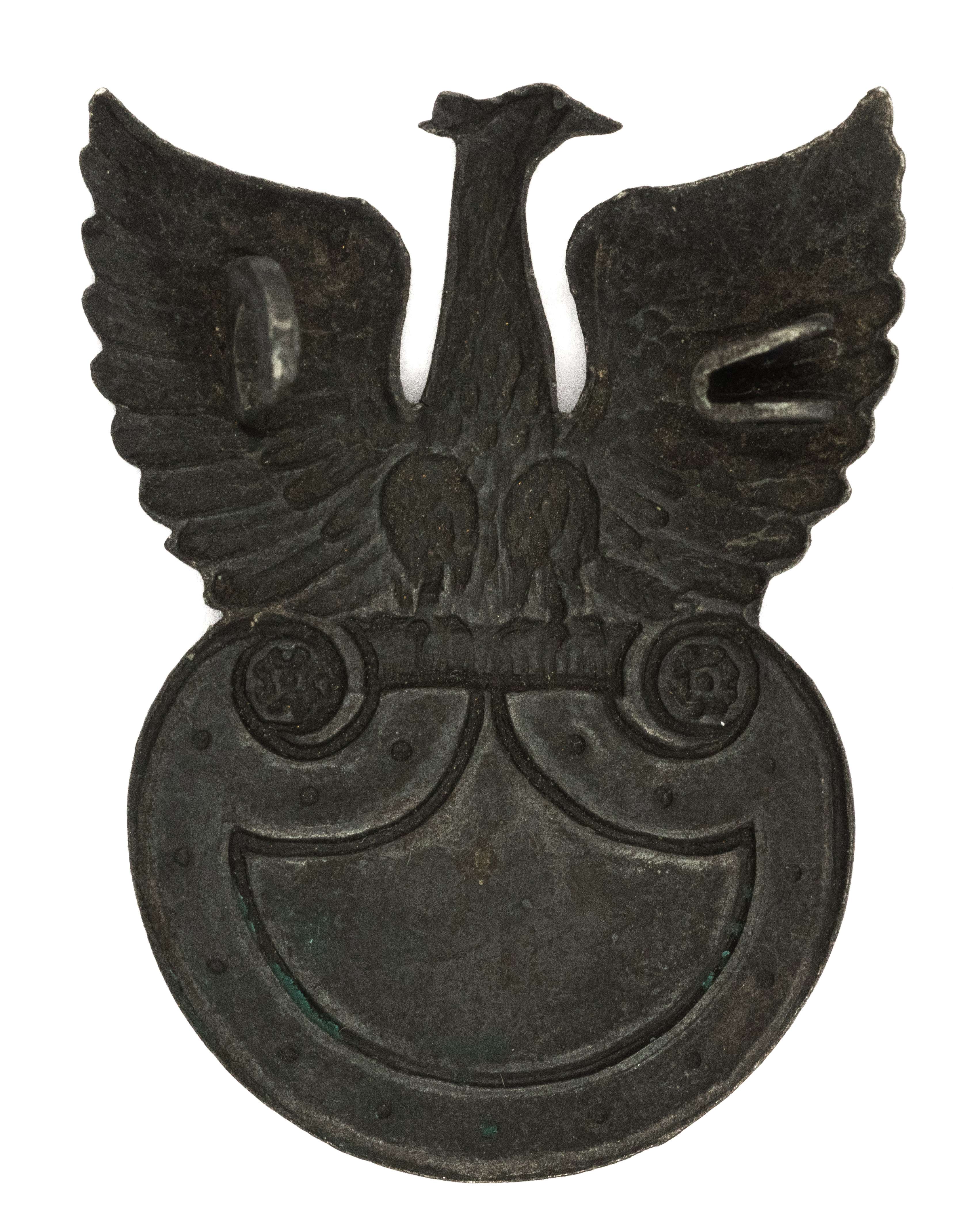 Orzeł produkcji wiedeńskiej; 41x30mm. Wykonany z cynku. Rewers z kontrą. Mocowany a poziomą agrafkę - brak szpilki. Lit. Tomasz Zawistowski, Polskie Orły do czapek w latach 1900-17, str.234. Stan bardzo dobry.