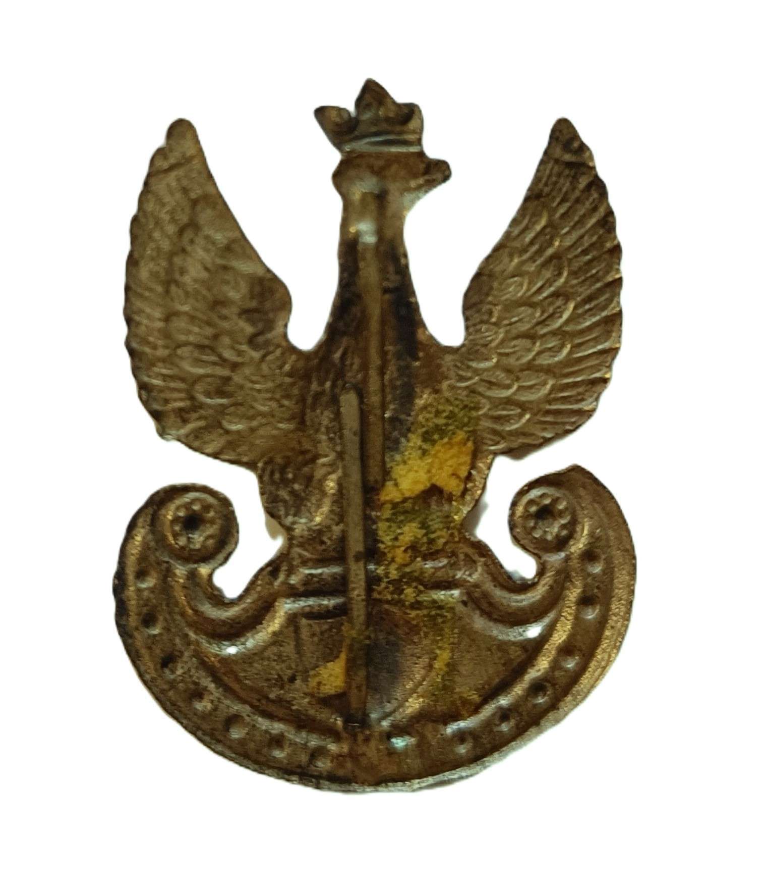 Orzeł wz. 17; 30x40 mm. Wykonany z blachy stalowej, srebrzony. Rewers z kontrą. Mocowany na dwie pionowe płaskie zapięcia. Zbliżony do wyrobów wiedeńskiej firmy Heinrich Ulbricht's Witwe. Lit. Tomasz Zawistowski, Polskie Orły do czapek w latach 1900-17, str. 91, il. 104. Stan bardzo dobry.