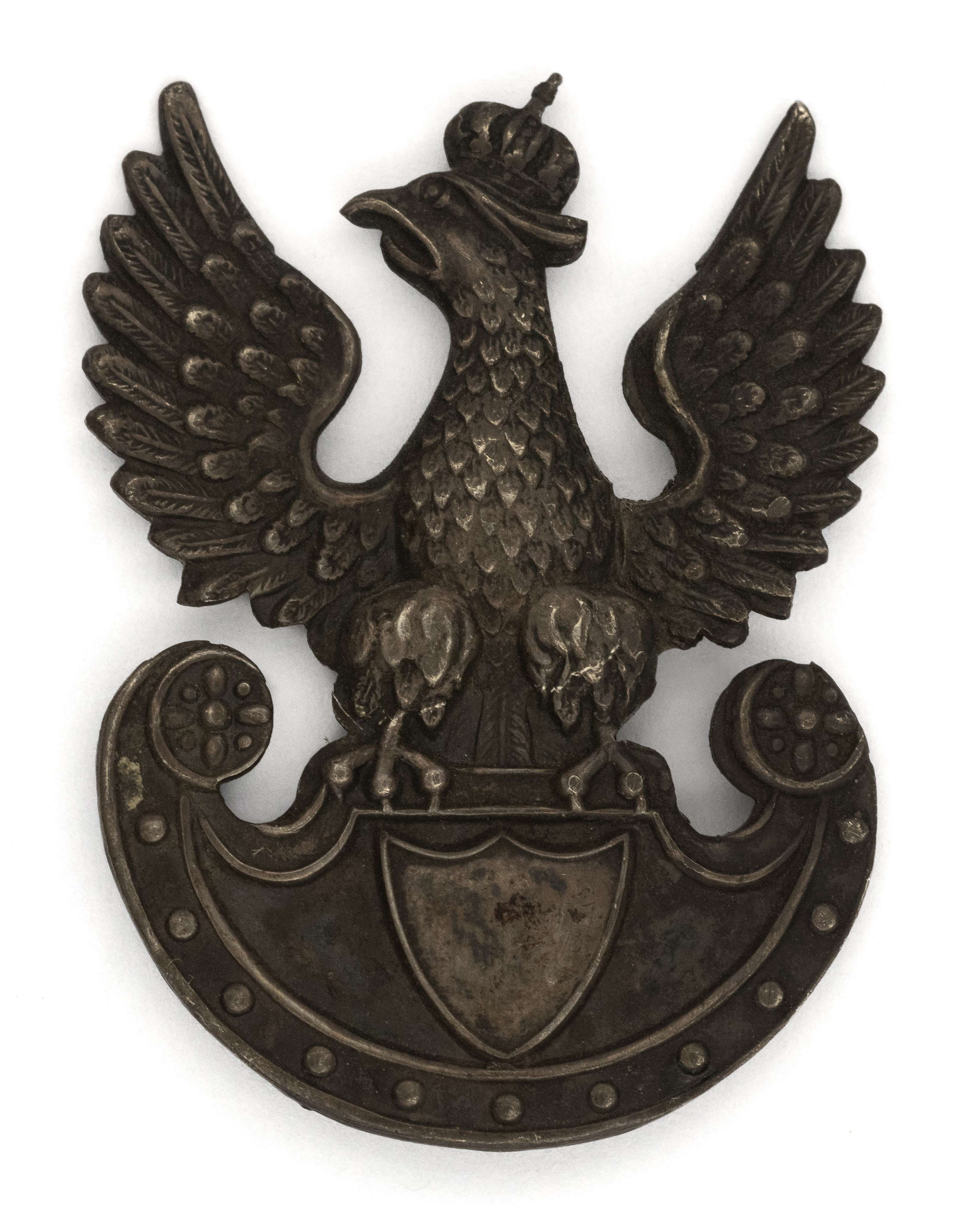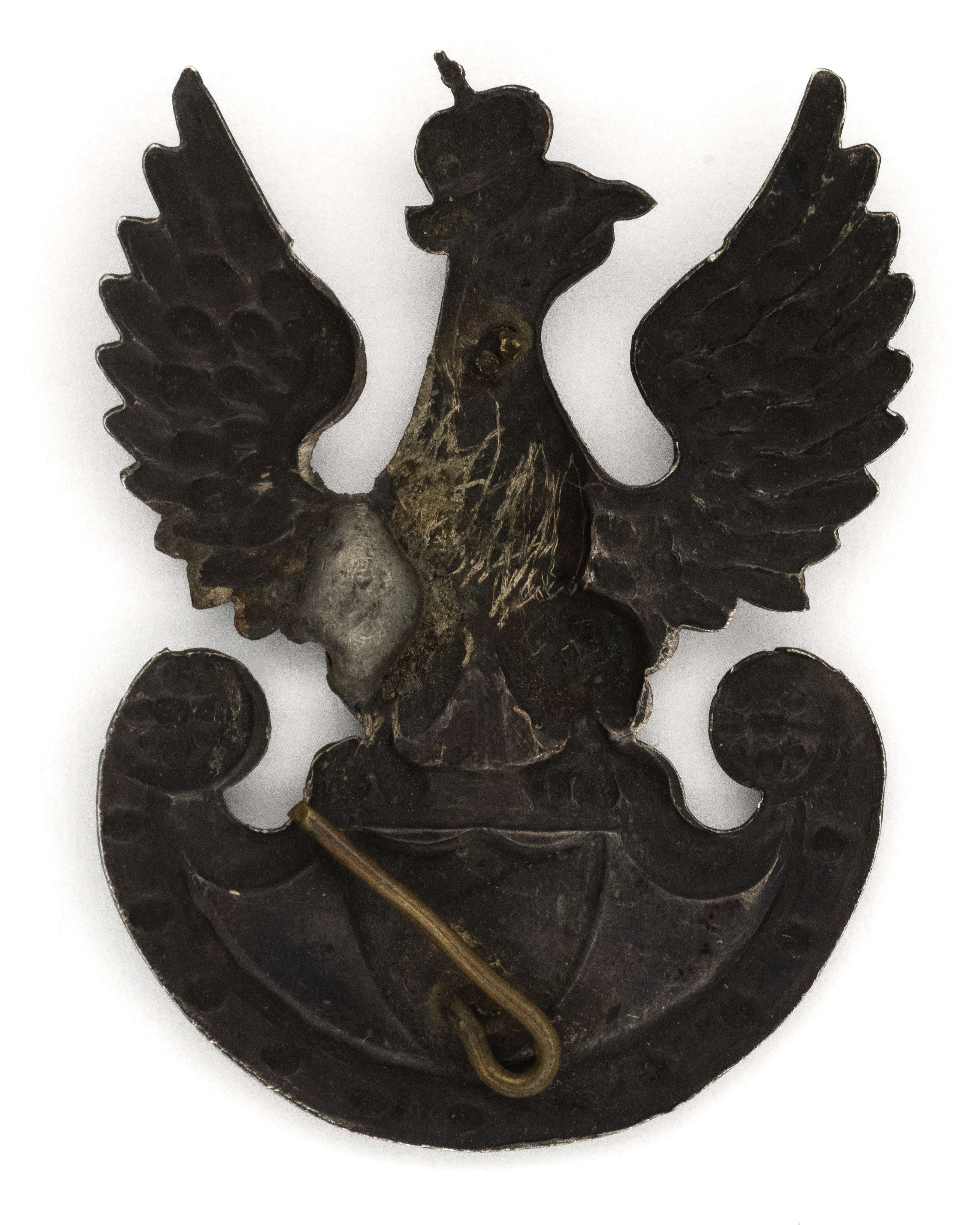 Orzeł wz. 17 Józef Chyliński, Warszawa 1917; 39,5x29,5mm. Wykonany z mosiądzu srebrzonego. Rewers z kontrą. Brak oryginalnego mocowania. Lit. Tomasz Zawistowski, Polskie Orły do czapek w latach 1900-17, str. 151. il.200. Stan bardzo dobry.