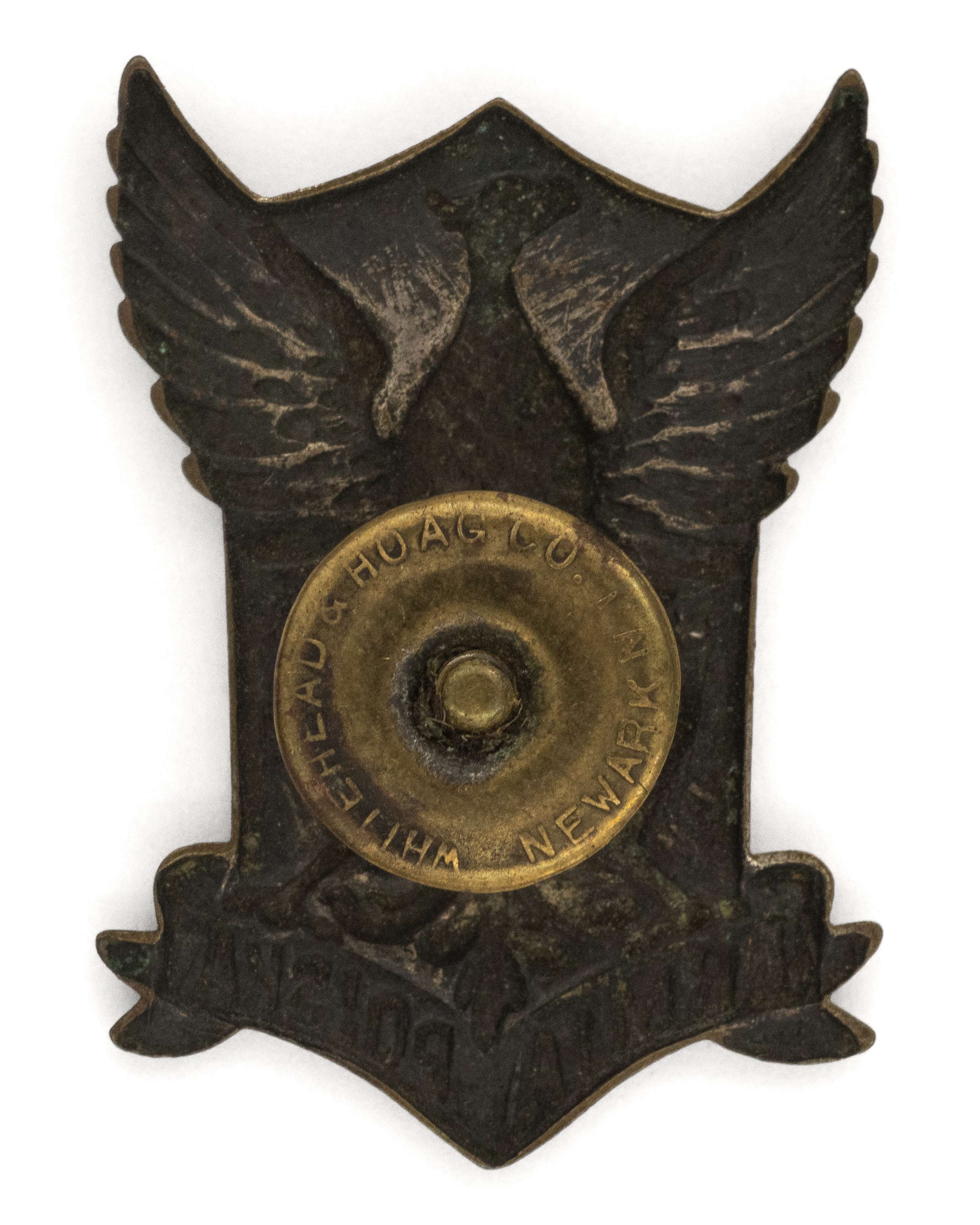 Orzeł ochotników z Ameryki Północnej do Armii Polskiej; 33x23mm. Wykonany w mosiądzu, srebrzony. Rewers z kontrą. Mocowany na słupek z nakrętką sygnowaną WHITEHEAD & HOAG C.O. NEWARK N.J. Lit. Tomasz Zawistowski, Polskie orły do czapek w latach 1917-19, str. 107-8. Stan bardzo dobry.