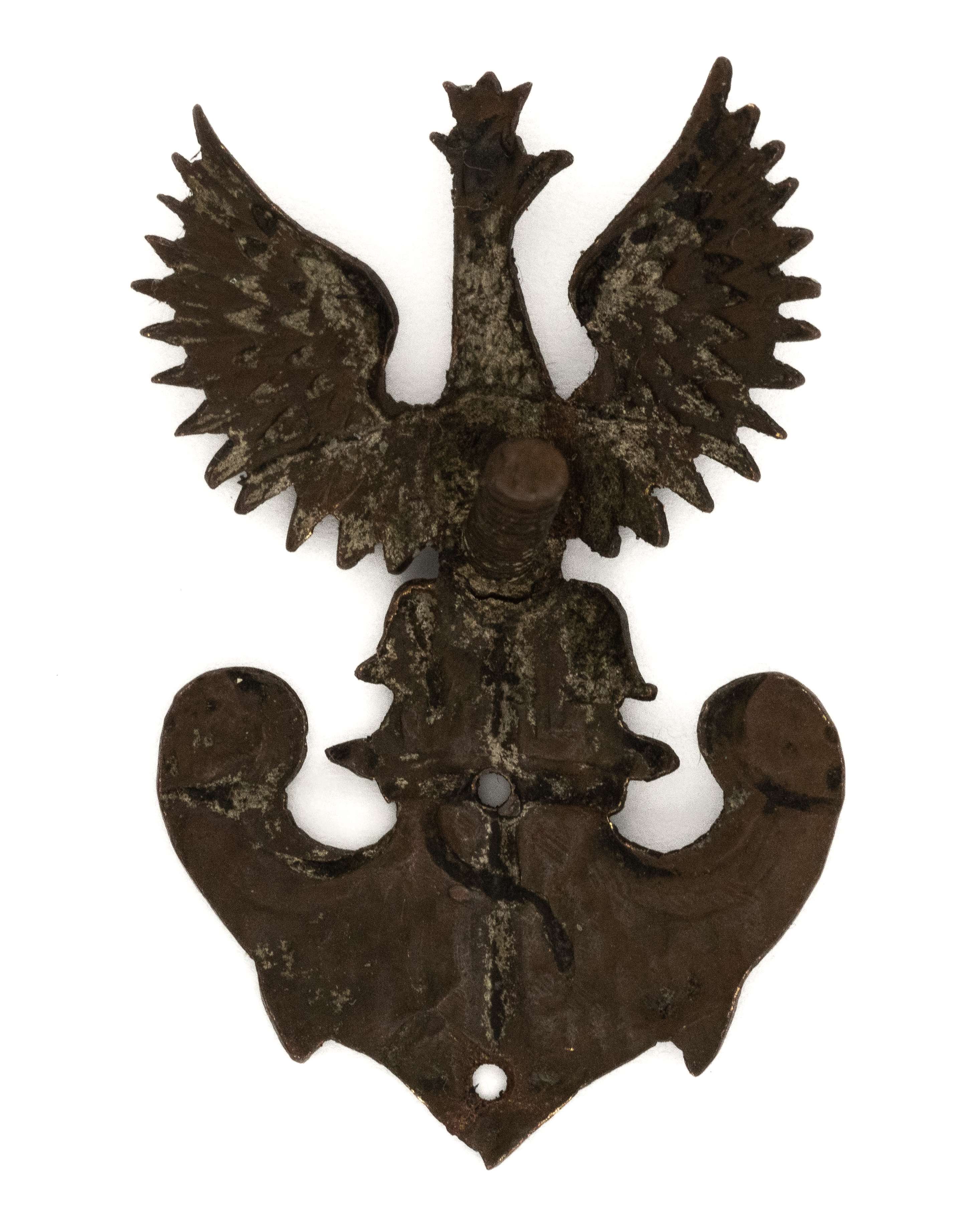 Orzeł Marynarka Wojenna; 41,5x26mm. Wykonany z mosiądzu srebrzonym jednoczęściowy. Rewers z kontrą. Mocowany na słupek - brak nakrętki. Lit. Tomasz Zawistowski, Polskie orły do czapek w latach 1919-39, str. 22-23. Stan dobry.