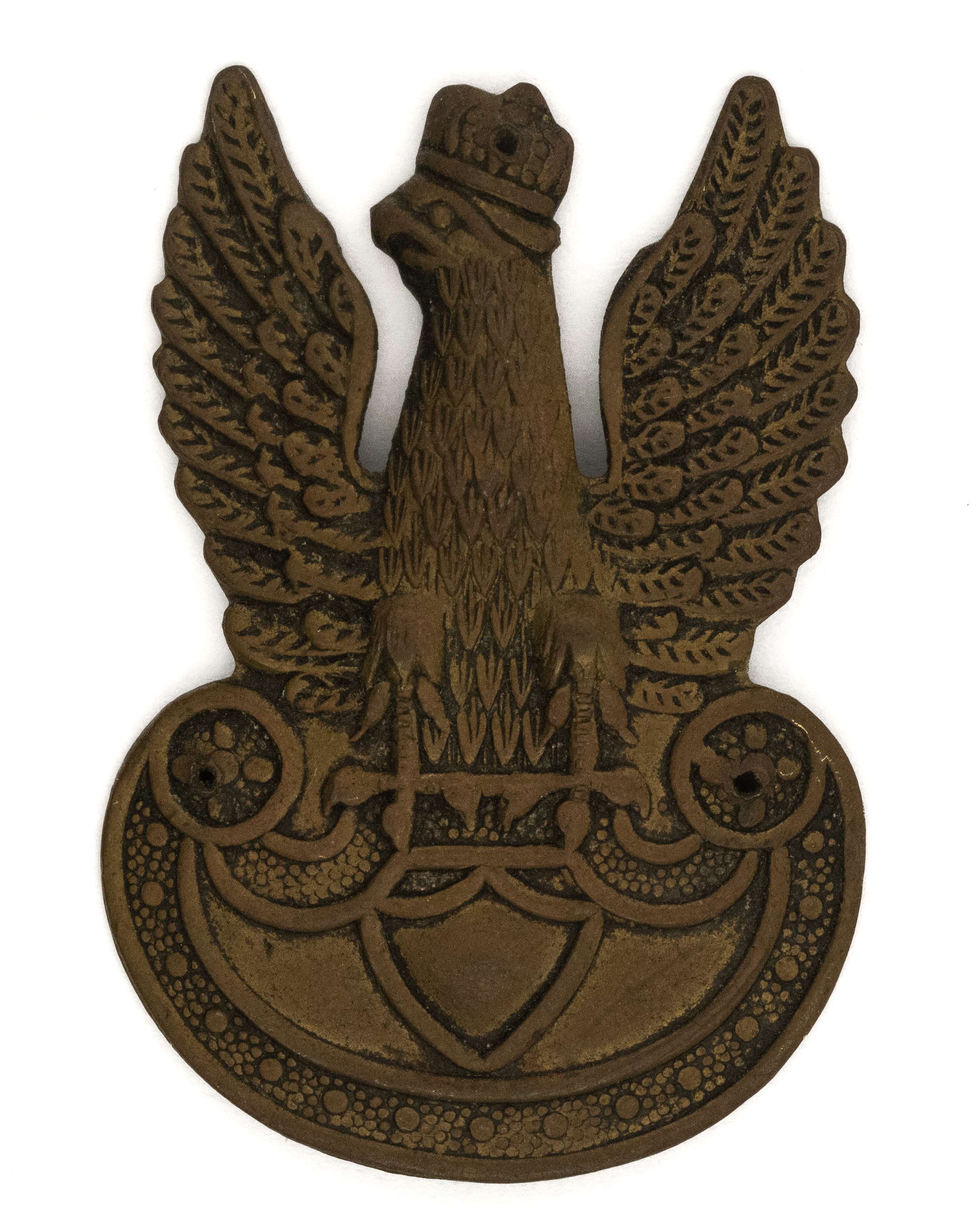 Orzeł wys. 40mm; 42x29mm. Wykonany z mosiądzu, Rewers z kontrą. Oryginalne mocowanie - 3 dziurki do przyszycia. Lit. Tomasz Zawistowski, Polskie orły do czapek w latach 1919-39, str.84-92. Stan bardzo dobry.