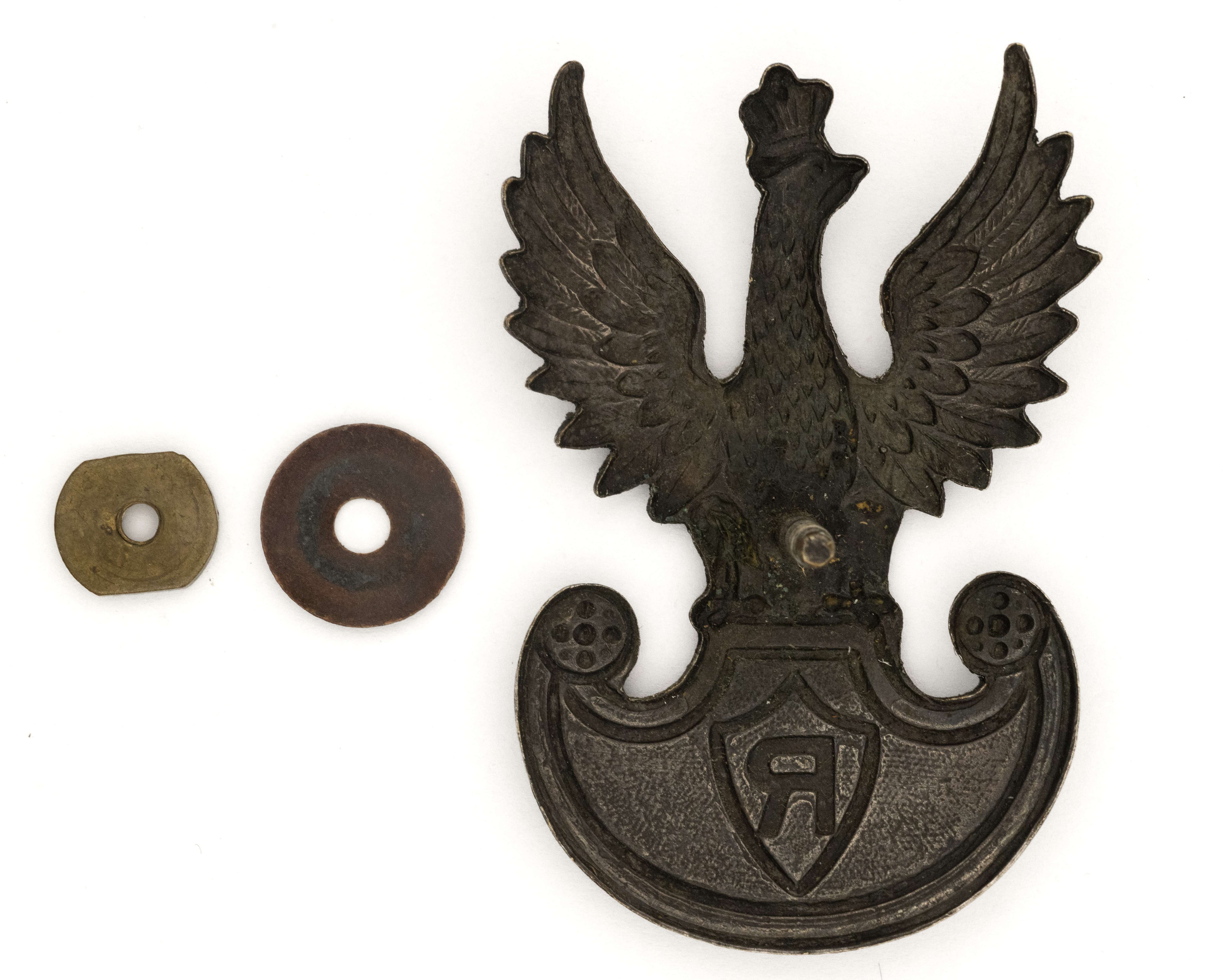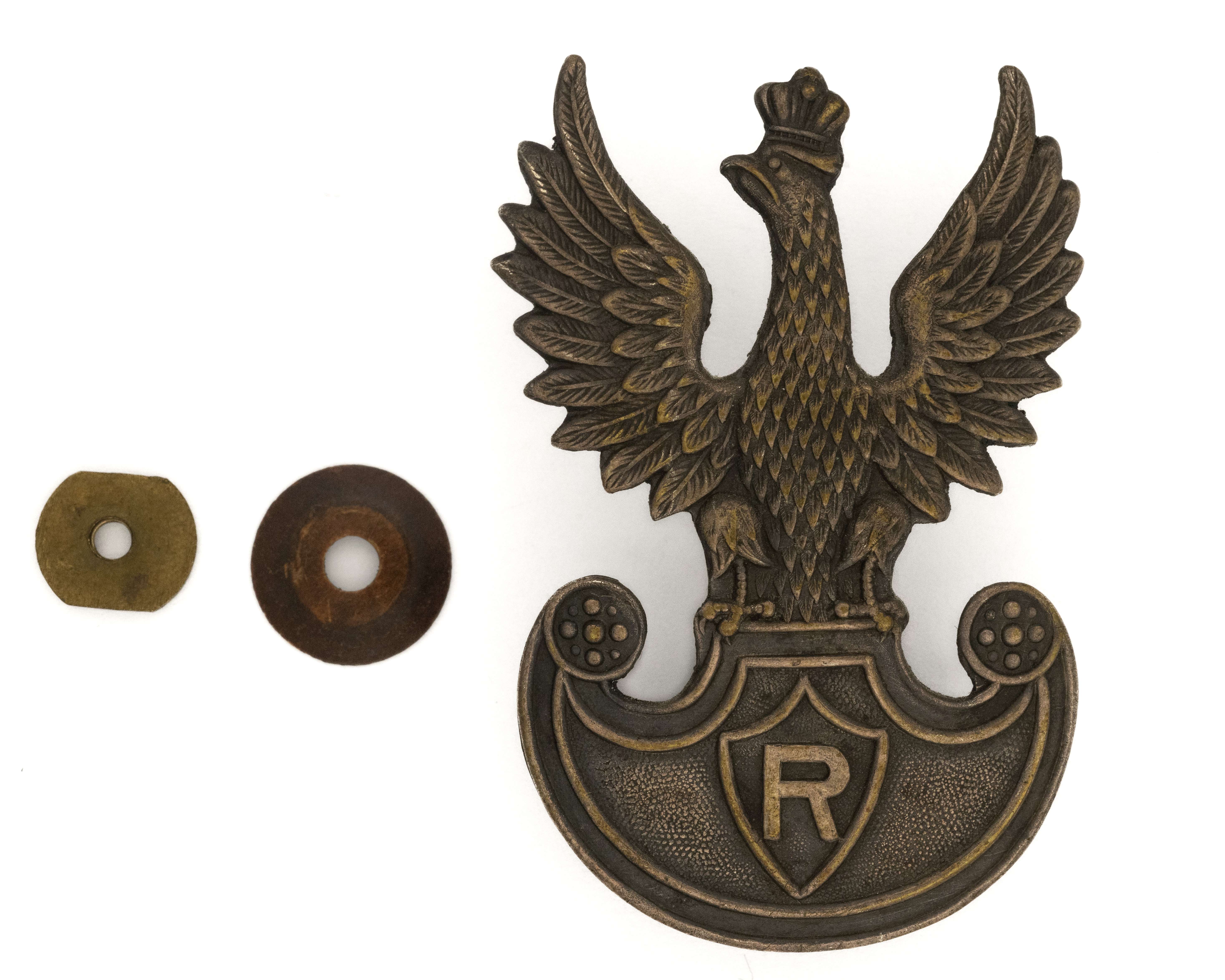 Orzeł Związek Rezerwistów; 65x43mm. Wykonany w mosiądzu, srebrzony. Rewers z kontrą. Mocowany na słupek z niesygnowaną nakrętką i podkładką. Lit. Tomasz Zawistowski, Polskie orły do czapek w latach 1919-1939, str. 67. Stan bardzo dobry.
