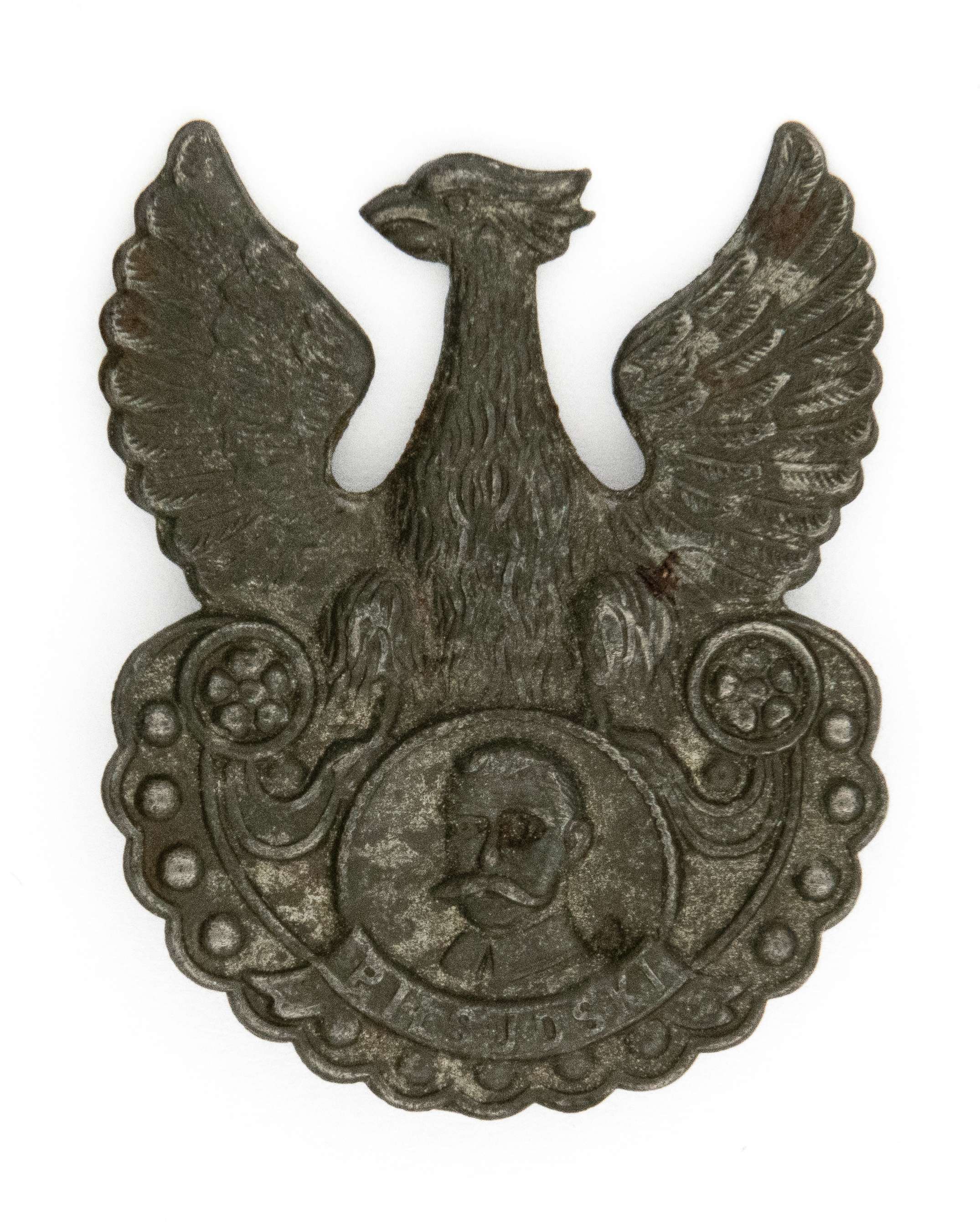 Aukcja 230 / Poz. 10 - Orzeł z wizerunkiem Józefa Piłsudskiego oraz falistą dolną krawędzią tarczy amazonek