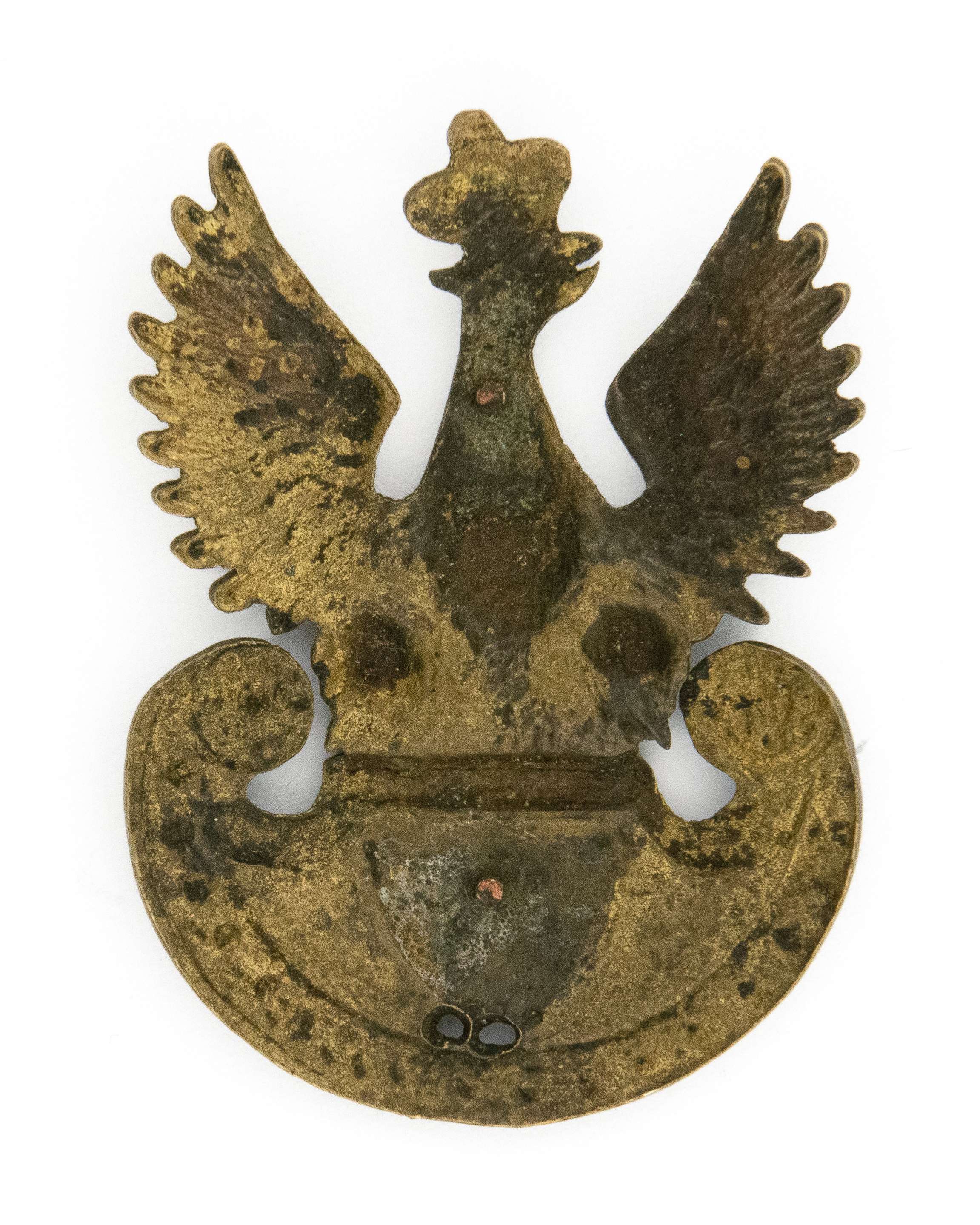 40 x 30,5mm. Wykonany z mosiądzu srebrzonego. Rewers z bardzo niewyraźną kontrą. Brak oryginalnego mocowania - wtórnie wykonane dwie dziurki do przyszycia. Cyfra "3" rytowana. Lit. Tomasz Zawistowski, Polskie Orły do czapek w latach 1900-17, str. 158; Ireneusz Banaszkiewicz, Katalog orłów z kolekcji Tom I, str. 49, Stan bardzo dobry.