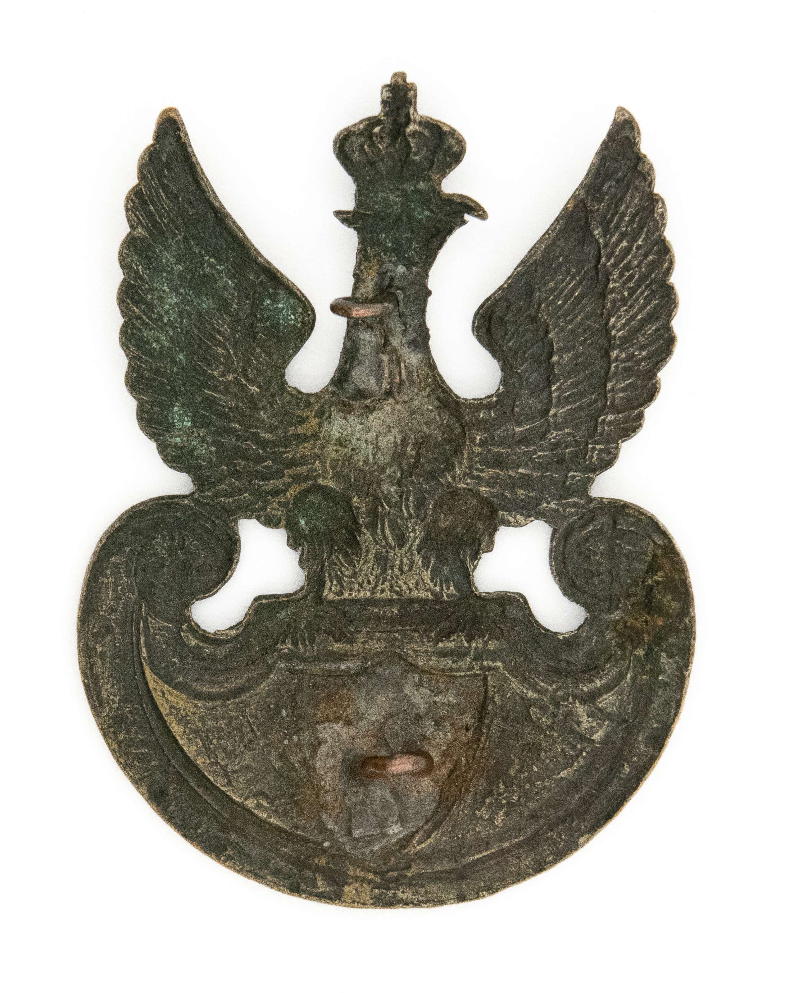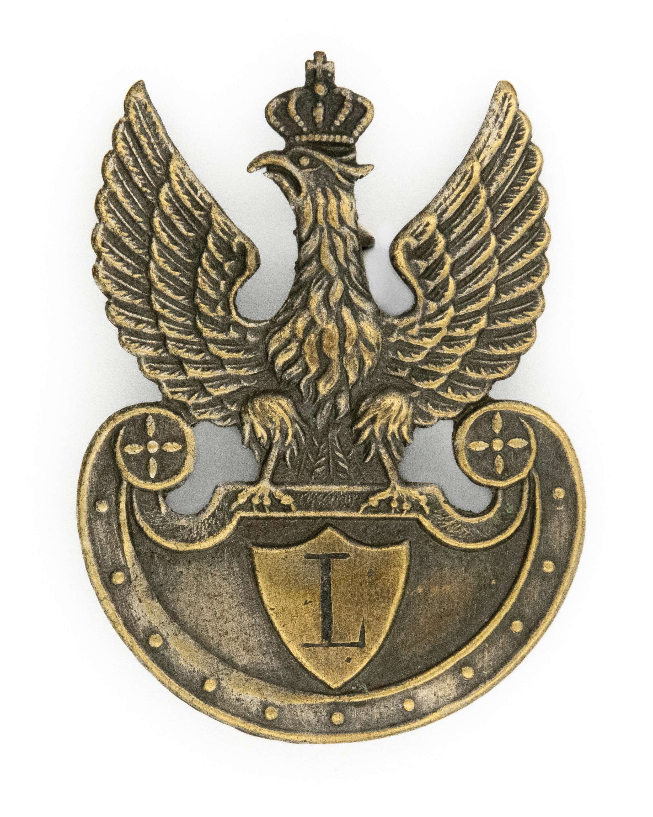 52,5 x 39,5mm. Wykonany z mosiądzu srebrzonego, jednoczęściowy - litera "L" rytowana. Rewers z kontrą. Mocowany na dwie omegi. Lit. Tomasz Zawistowski, Polskie orły do czapek w latach 1900-1917, str. 138-9; Ireneusz Banaszkiewicz, Katalog orłów z kolekcji Tom I, str. 42. Stan bardzo dobry.