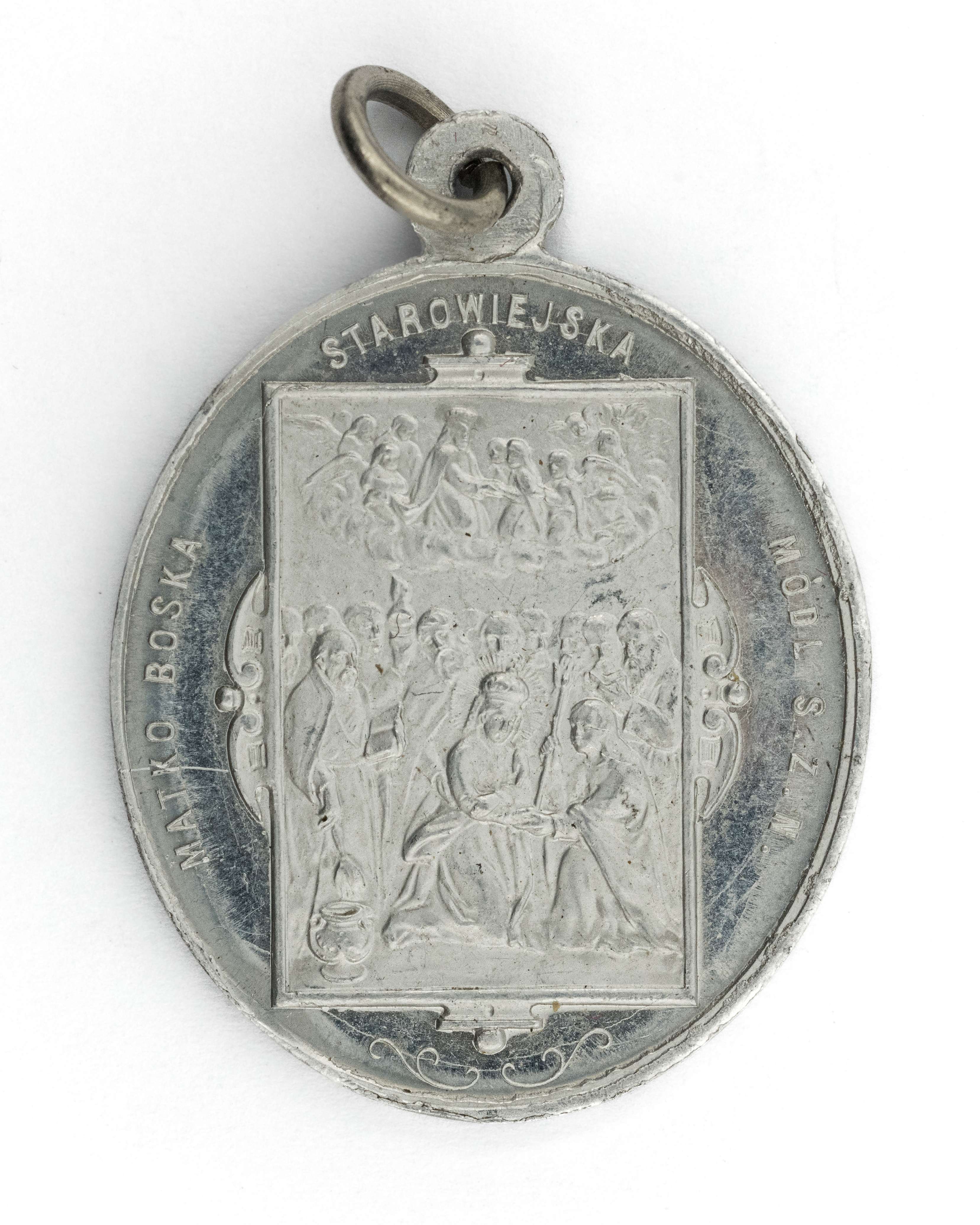 Medalik 50 rocznica koronacji Matki Boskiej Starowiejskiej 1877-1927. Matko Boska Starowiejska Módl się za Nami