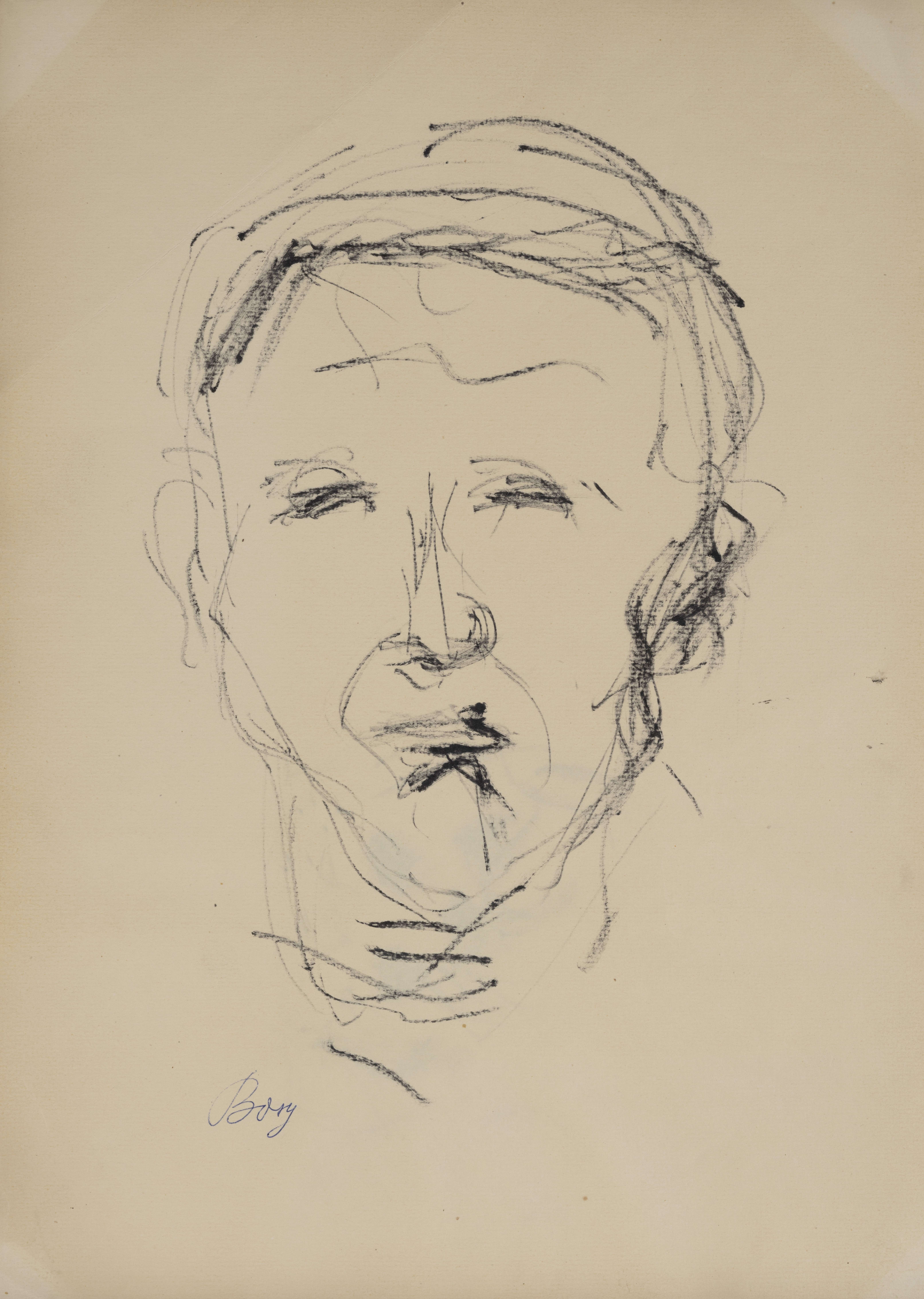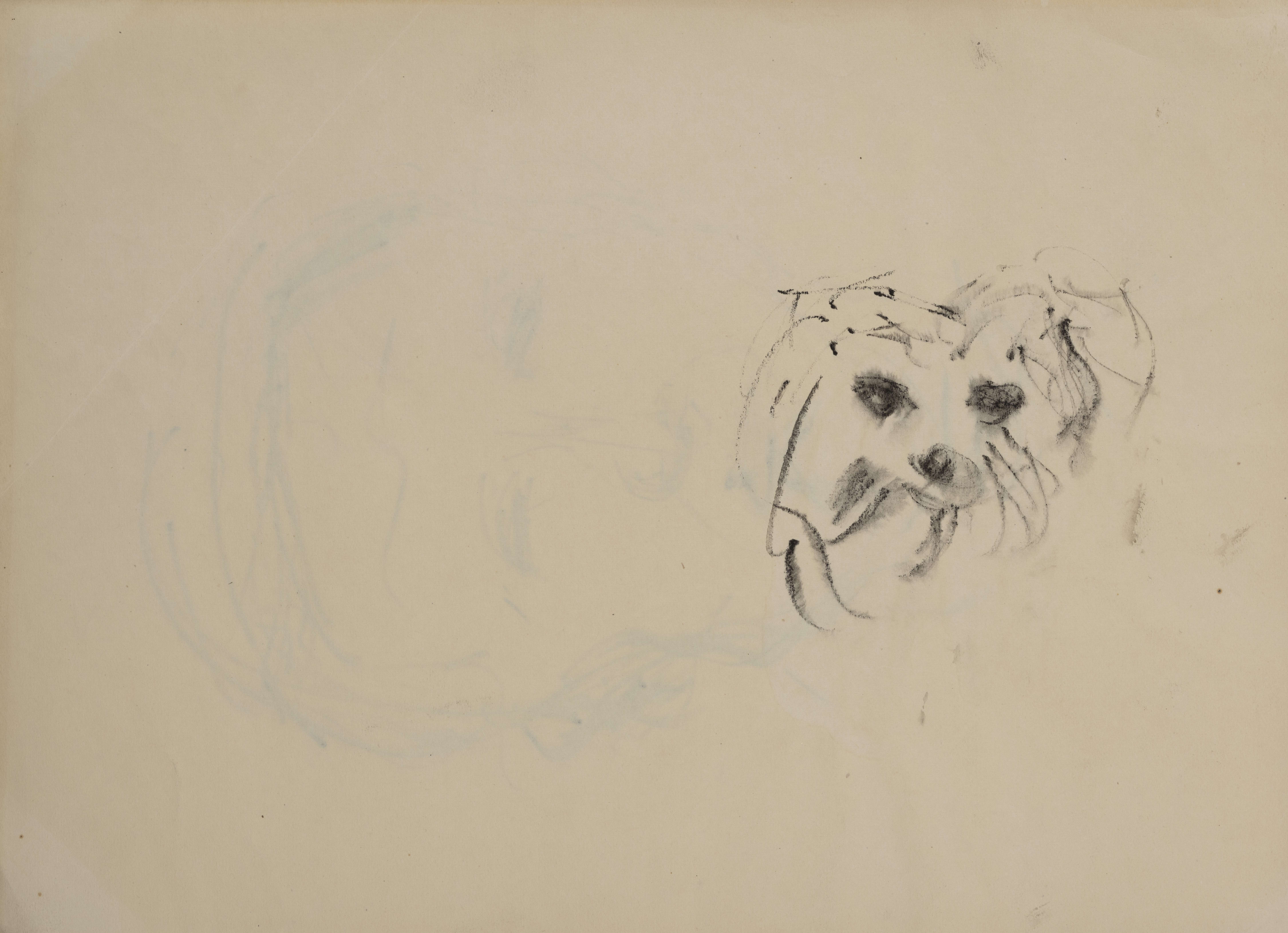 sygn. długopisem l.d.: Bosy, na odwrocie szkic mordki psa.