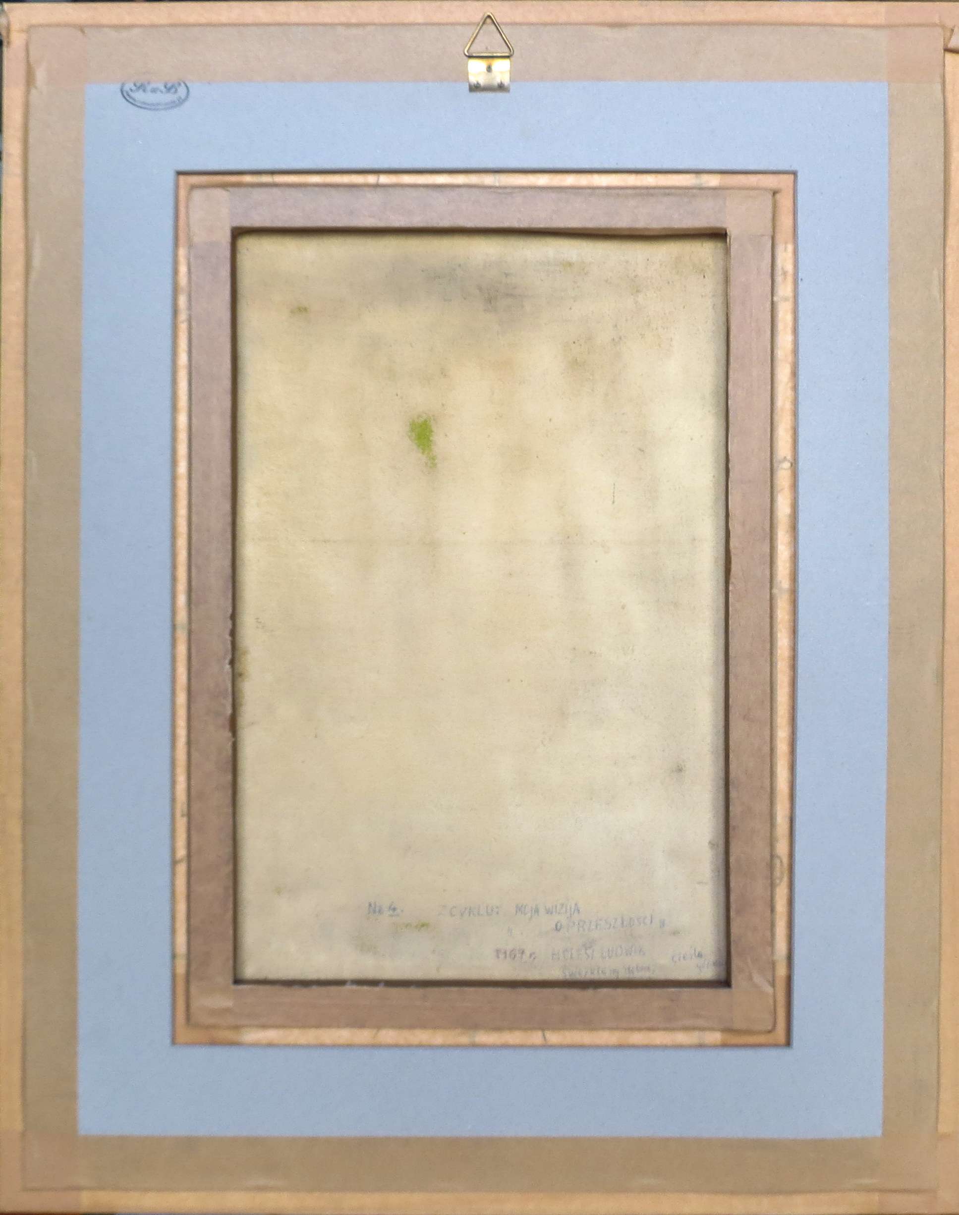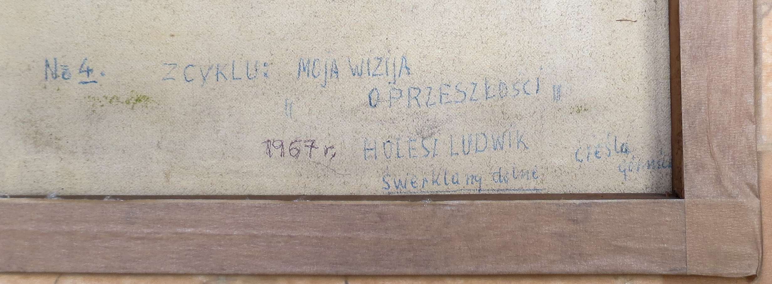 Na odwrocie autorski opis: No 4. Z cyklu: Moja wizija(!) / "O przeszłości" / 1967 r. Holesz Ludwik / cieśla górniczy / Świerklany Dolne
