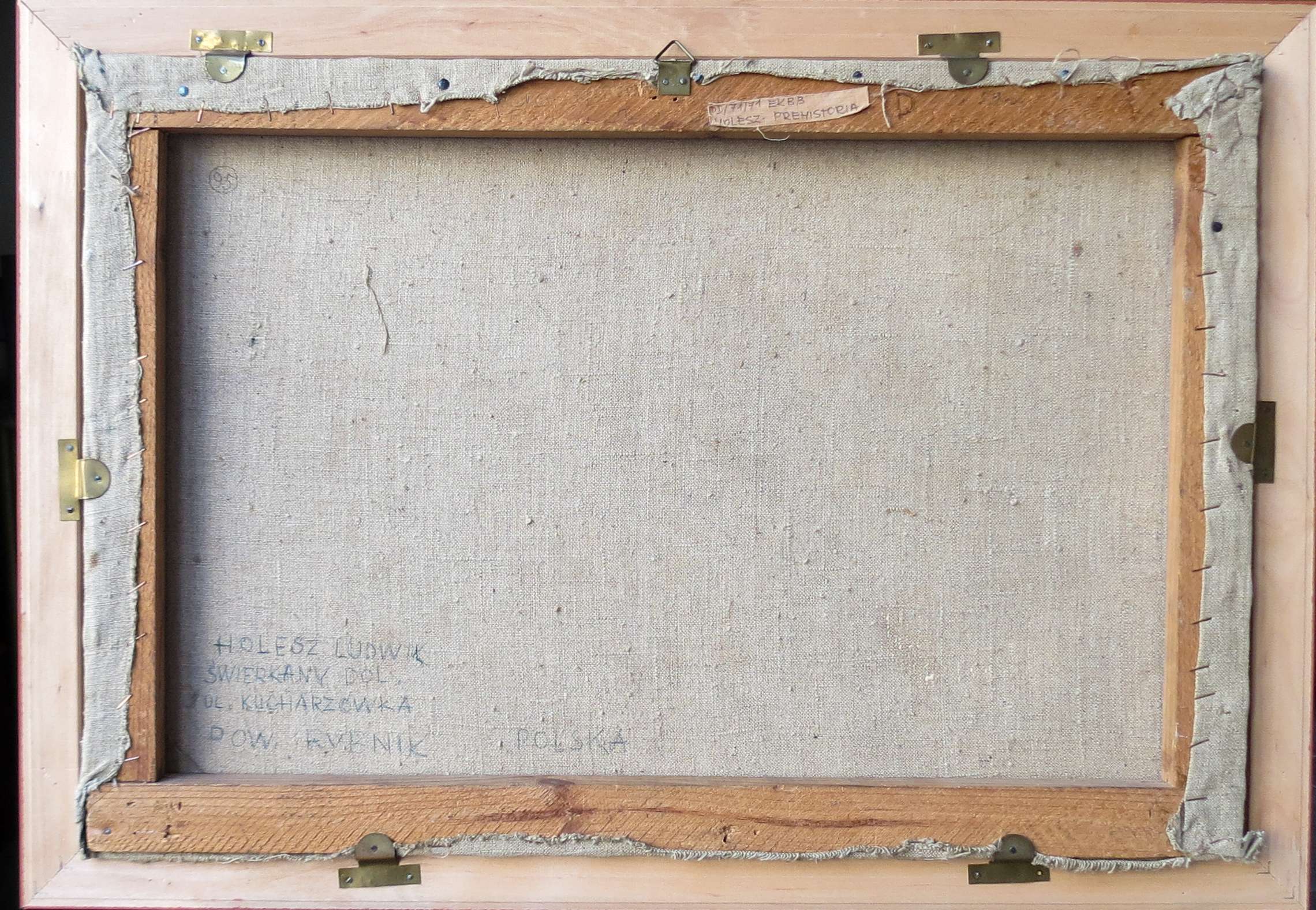 Na odwrocie opis autorski: "Holesz Ludwik / Świerklany Dol. / Ul. Kucharzówka/ Pow. Rybnik Polska, oraz nalepka (plaster) z numerami i tytułem obrazu.