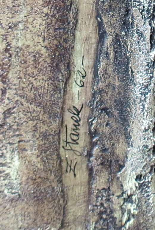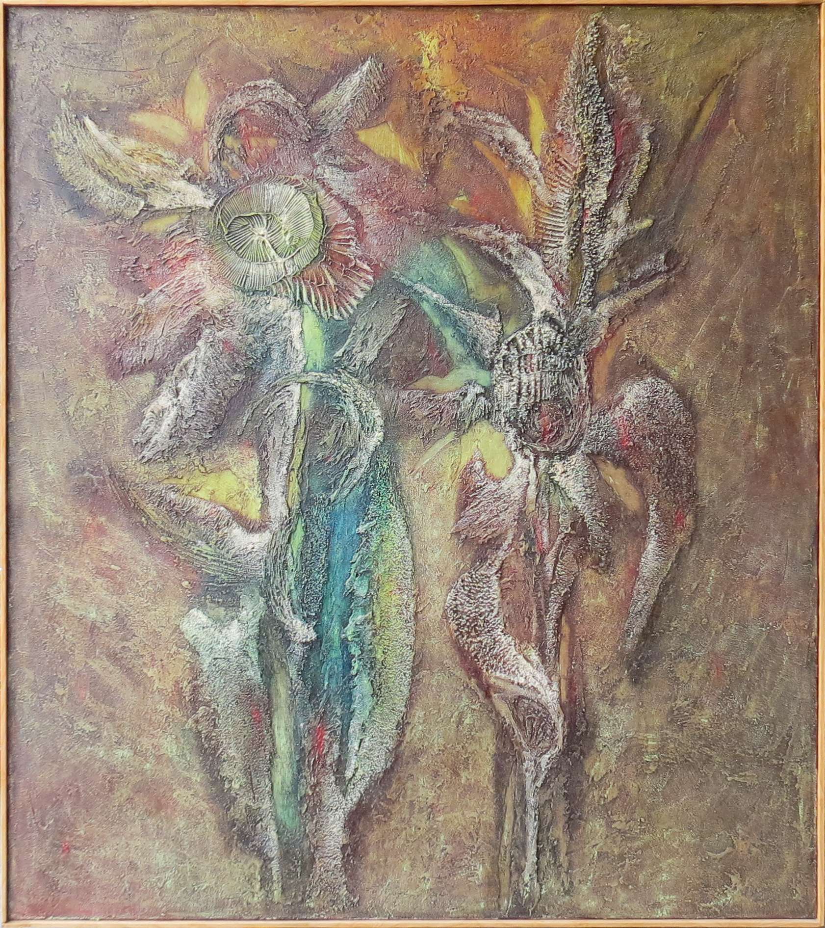 olej, płótno, 100 x 130 cm, sygn. śr.d.: Z. Stanek - 62 Na odwrocie autorska nalepka z tekstem atramentem: Zdzisław Stanek / tech. olej 100 x 130 rok 1962 / tyt. "Kwiat XVI" / Katowice ul. Drzymały 5/5. Obraz z kolekcji rodziny Zdzisława Stanka .