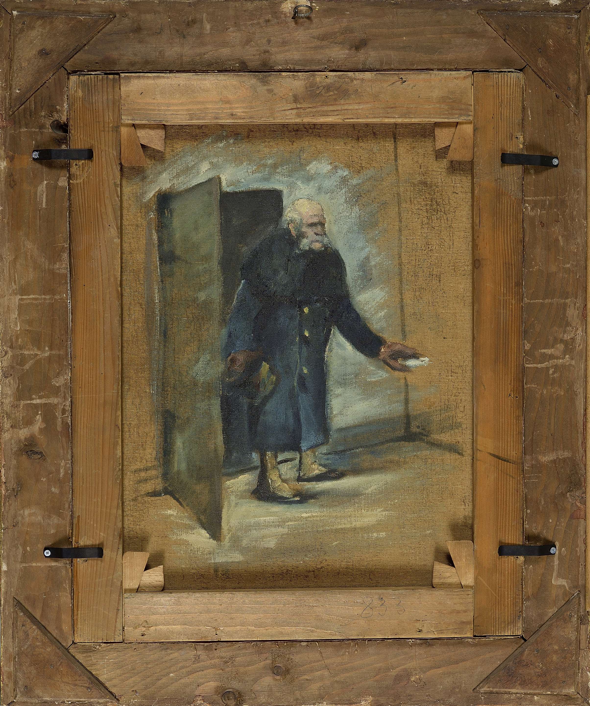 sygn. p.d.: A.k. d/J (?) - 22 - 1863/1893 (?), na odwrocie szkic galicyjskiego mężczyzny w drzwiach wyciągającego rękę.
